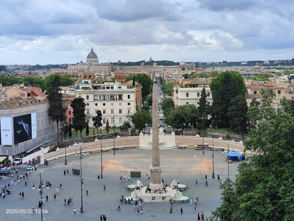 在苹丘观景台上观赏人民广场全景和远处的圣彼得大教堂。