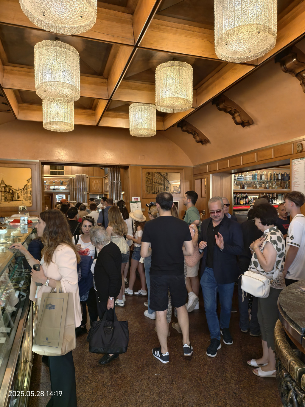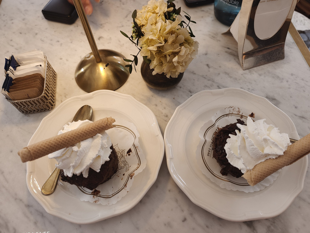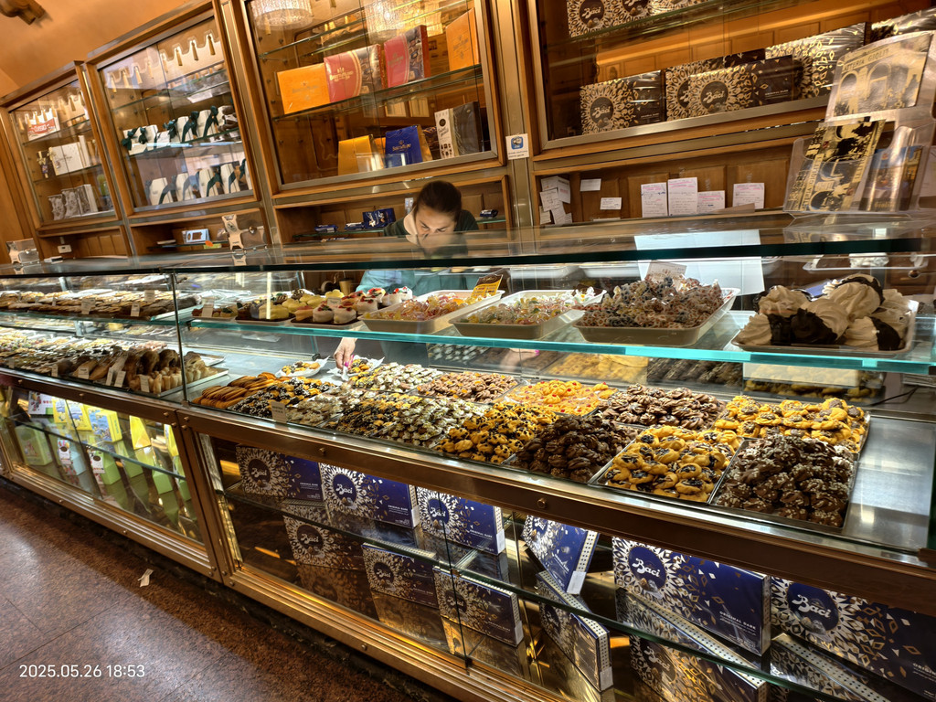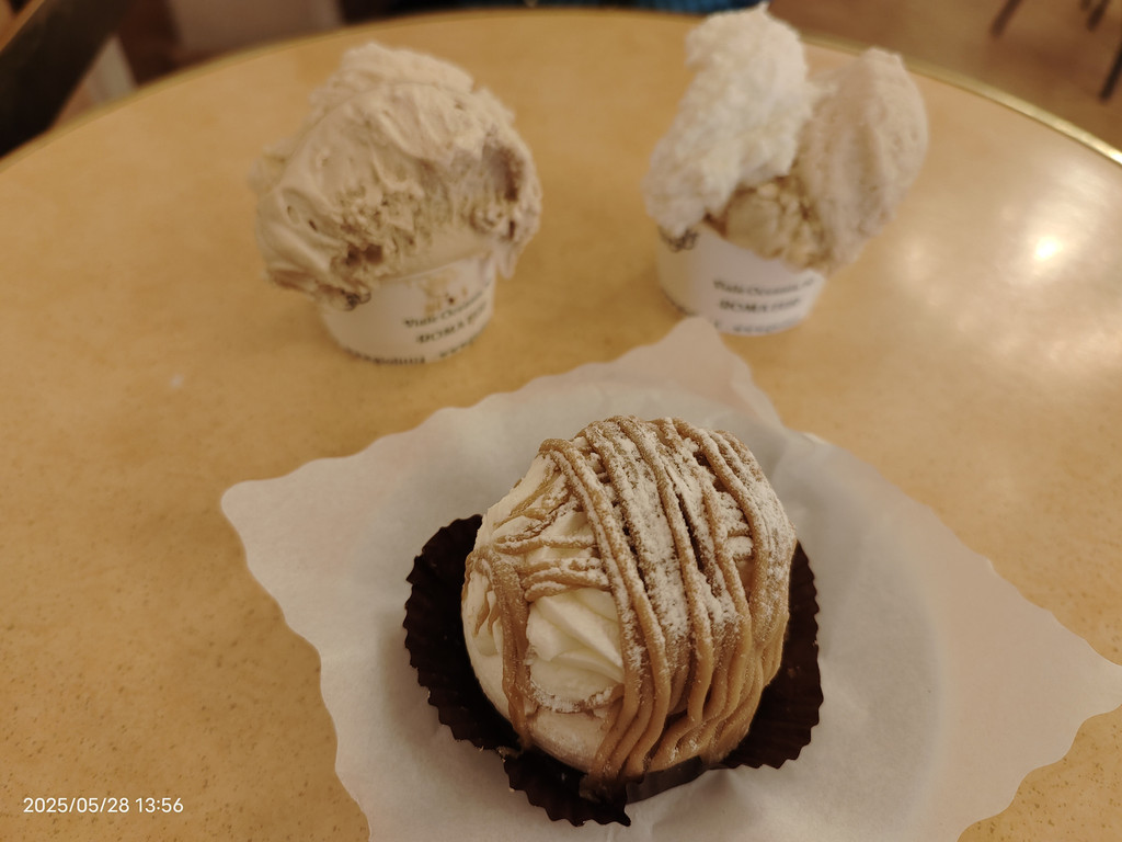 这家蛋糕及冰淇淋店人气更旺,排队购买冰淇淋,我们本想坐下来休息休息,但是根本没有座位,只能站着吃。