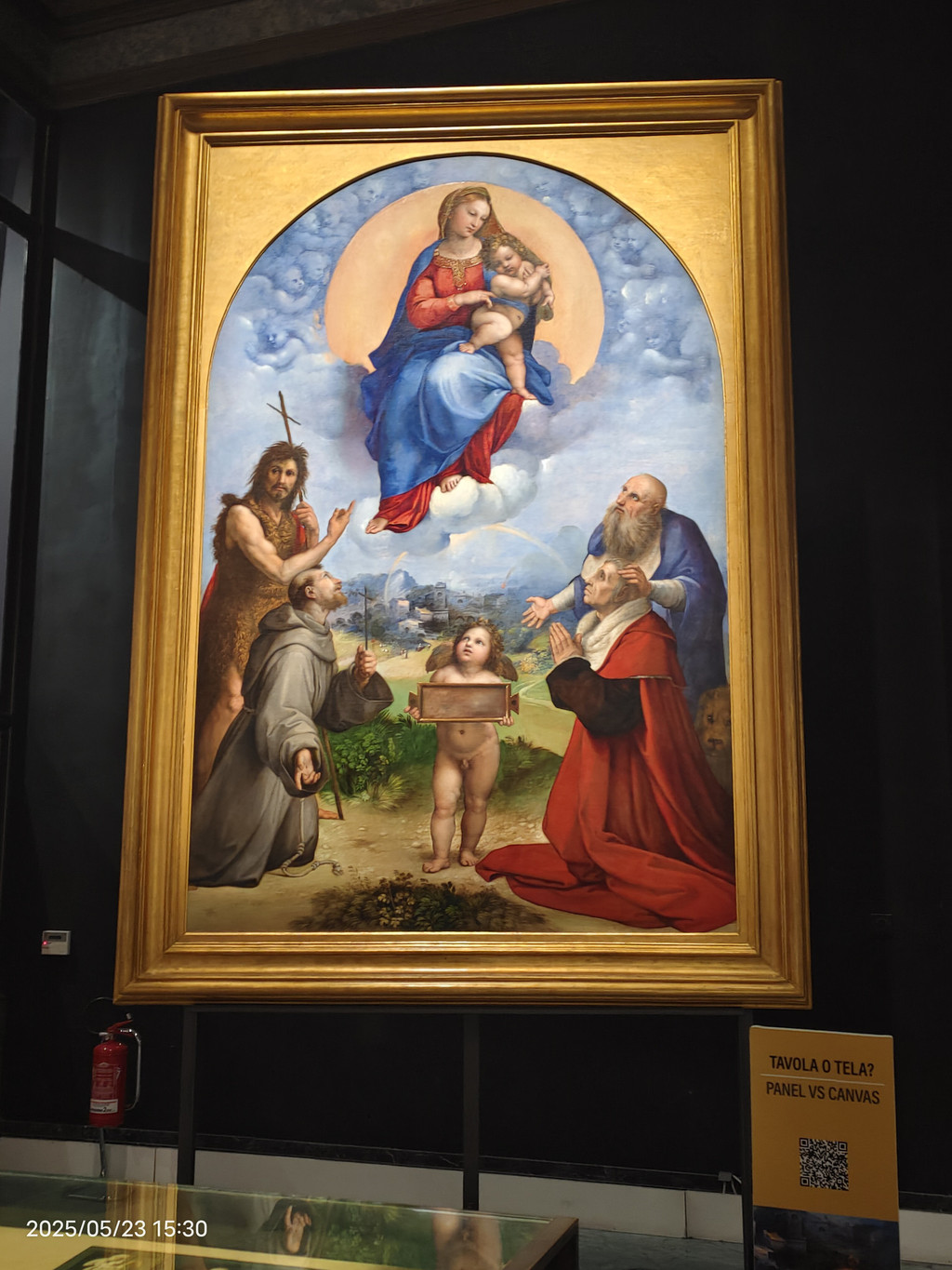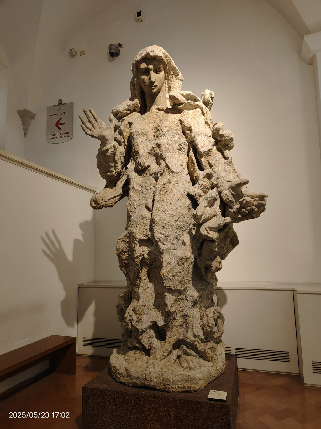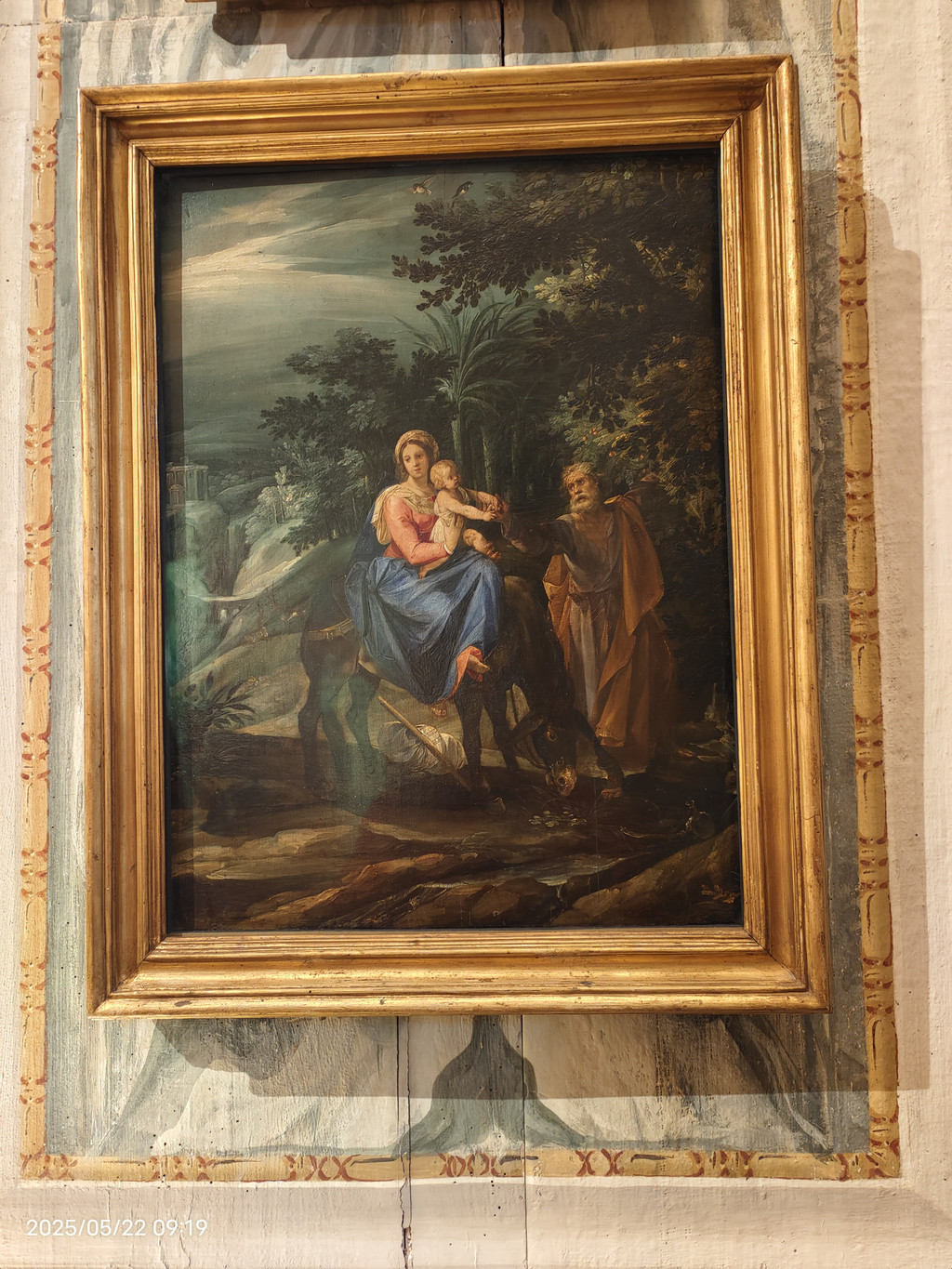 接着来到教宗庇护《五世画廊》,这里有一间圣母无染原罪室,里头有一尊黑袍蓝衣的圣母,后方的壁画为 1858年罗马教宗庇护九世委托当时最有名的意大利弗朗切斯科·波德斯蒂