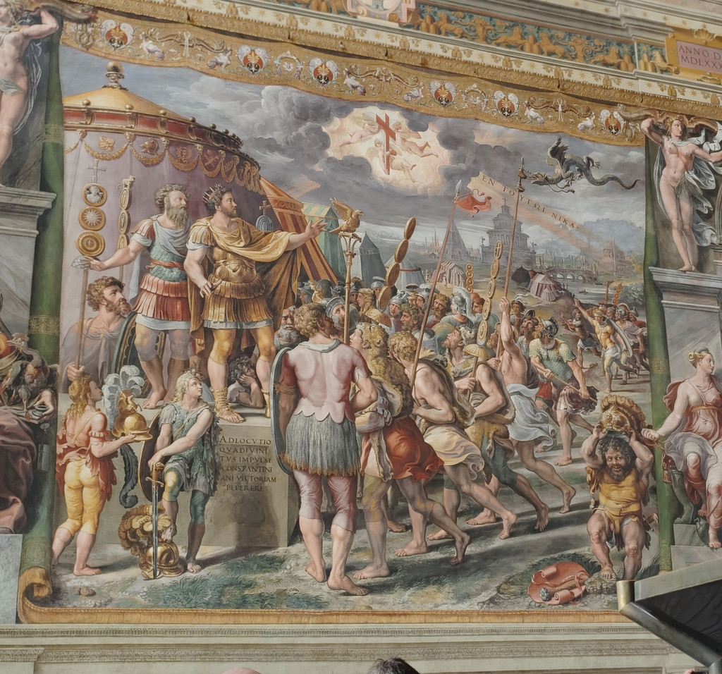 壁画《十字架显圣》描绘当君士坦丁出征他的对手马克森提乌斯时,巨大的十字架向他显现的传奇故事。在天空中出现十字架的异象,旁边是希腊文“Εν τούτω νίκα”(借此记号,你必征服)。
