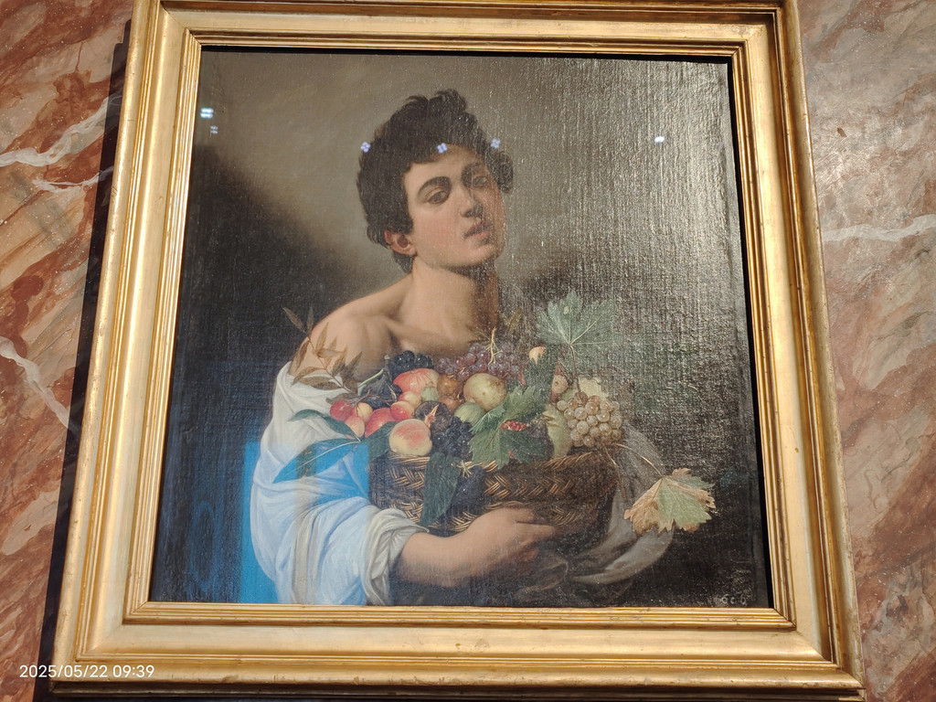 卡拉瓦乔的《捧著果篮的男孩》,约绘于1593-1595年。