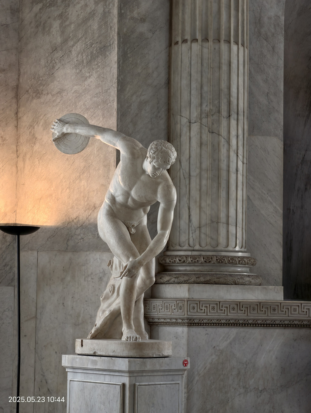 《掷铁饼者》是希腊雕刻家米隆于约公元前450年雕刻的青铜雕塑,原作已经丢失,复制品现收藏于罗马国立博物馆、特尔梅博物馆、梵蒂冈博物馆。《掷铁饼者》取材于希腊现实生活中的体育竞技活动,刻画的是一名强健的男子在掷铁饼过程中具有表现力的瞬间。