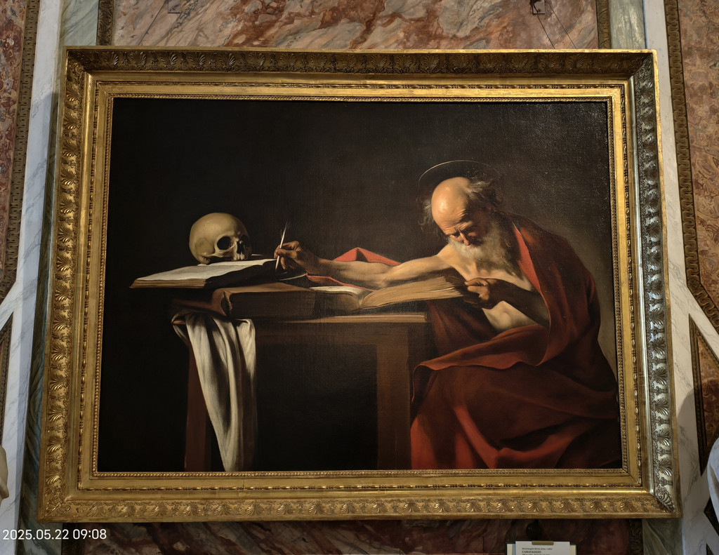 卡拉瓦乔的《正在书写的圣热罗尼莫》,约绘于1605-1606年,1672年始藏