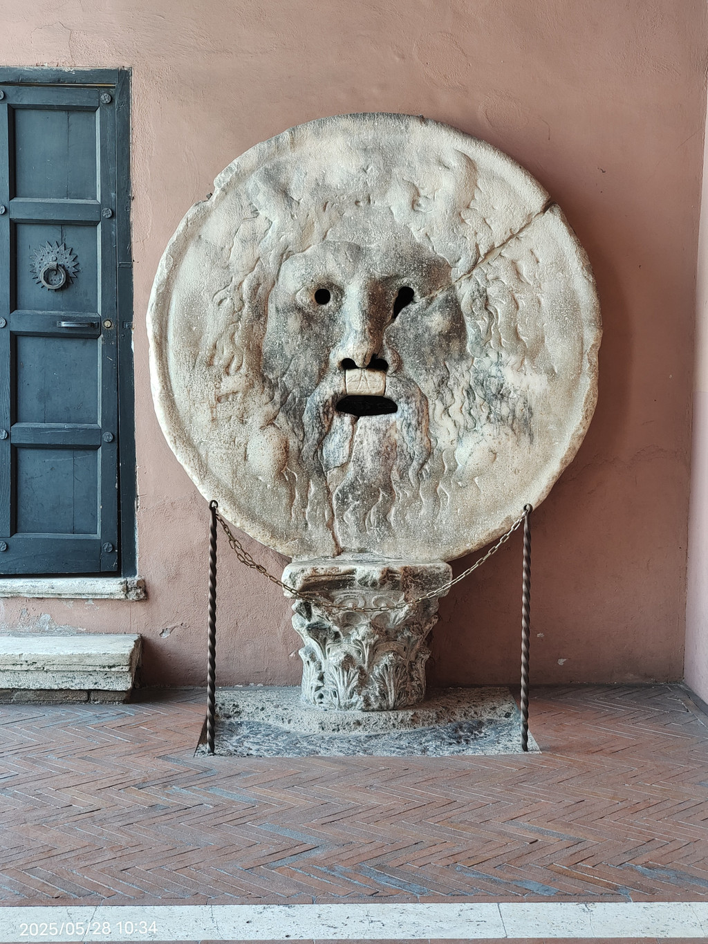 真理之口是一块雕刻着人脸的大理石板,这块石板有可能是公元1世纪古罗马喷泉的一部分,也有可能是一个井盖。真理之口被用作“测谎仪”,传说将手伸入真理之口,如果撒谎,手便会被咬住。真理之口之所以上镜率颇高,是因为这里是电影《罗马假日》的取景地之一,赫本和派克也在这里测过谎,场景非常甜蜜。