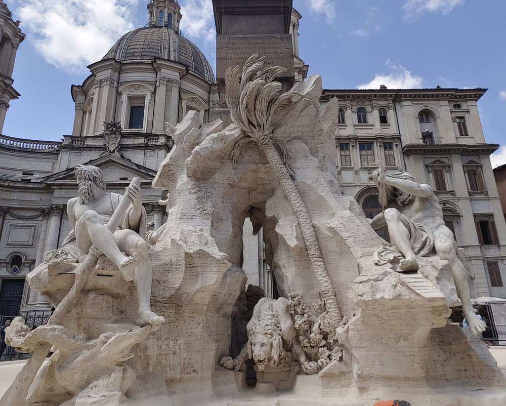 罗通达广场上的方尖碑是古埃及法老拉美西斯二世时期(公元前13世纪)为赫利奥波利斯城雕刻。公元1世纪左右,罗马皇帝多米提安命人将这座方尖碑运回罗马,竖立在伊西斯神庙前。直到1711年,教皇克莱门特十一世为了美化万神殿前的罗通达广场,将方尖碑安置在由贾科莫·德拉·波尔塔于1575年设计的优雅喷泉之上。