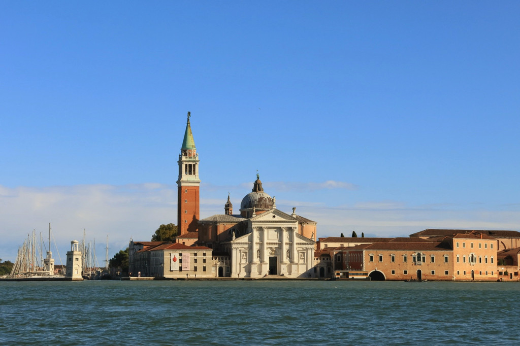 从圣马可广场往东南方向看,就可以看到圣乔治马乔雷岛(需乘船前往),上面仅有的一栋建筑物就是圣乔治马乔雷教堂。