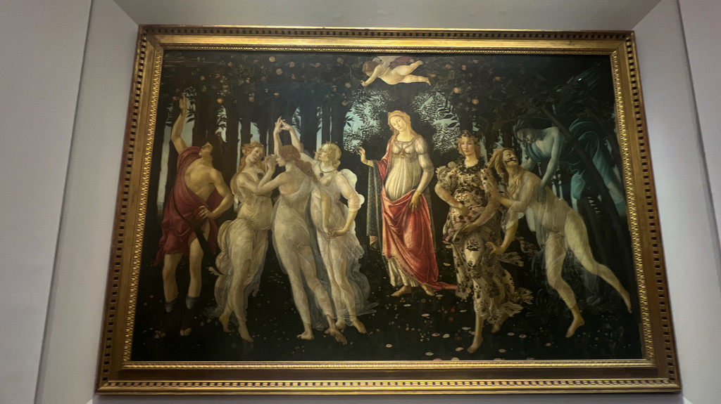 乌菲兹美术馆需要先去3号门的房间,凭预约单换取门票,之后再按预约场次的时间,在1号门排队进入。美术馆呈“U”字形,进门后上二楼,就可以开启艺术之旅了。像这种美术馆或者博物馆,我强烈建议一定要提前预约讲解员/导游,如果不是艺术生或者学过艺术史,光凭自己看是很难看明白这些传世名作到底是如何的精妙。我这次也是提前通过X程直接包了一个小团,在和李姓导游小姐姐汇合后,开始参观。以下内容均整理自李导的讲解,我不是艺术生,有些专业名词如果说的不对,还请见谅:
