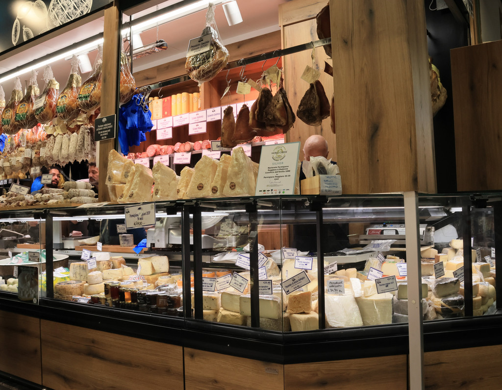 继续往西走,我们到达了佛罗伦萨的中央市场,不同于大型综合购物商场,这里更像是一个大型的“菜市场”,里面都是一个一个的摊位,一层主要出售蔬菜、水果、肉类、奶酪及各式调料,二层有一些餐饮,据说牛肚包是必吃菜肴,但是我们没有尝试,这里是零距离购物的理想场所,可以沉浸式感受佛罗伦萨市民的烟火气。