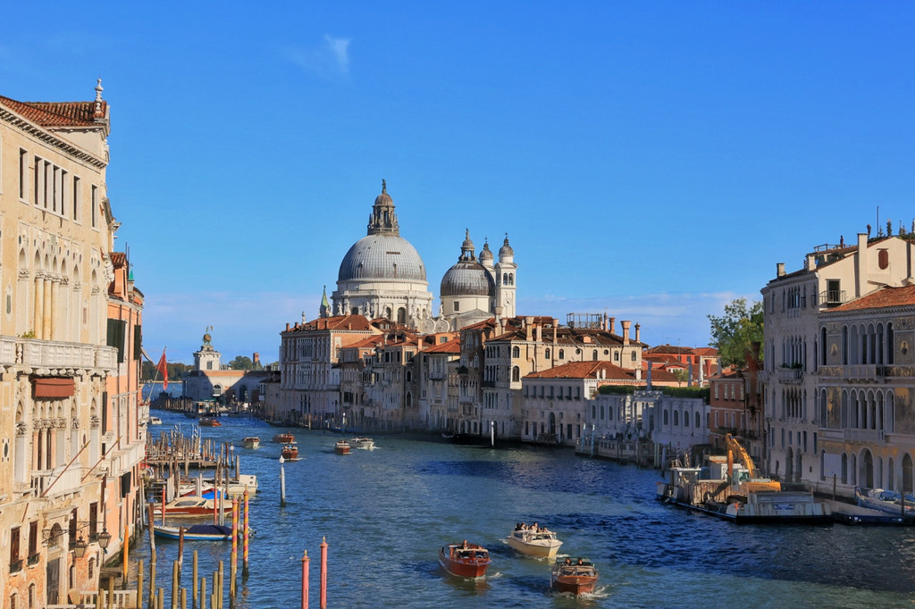 从圣马可广场沿着大运河方向往西北走,曲曲折折来到学院桥,这座桥是威尼斯大运河上唯一的木制桥,赶上天气好的话,这里就是欣赏威尼斯的一个绝佳位置。