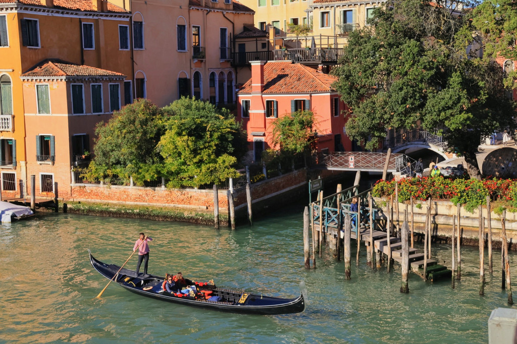 威尼斯的贡多拉游船主要集中在圣马可广场和里亚托桥周边,根据贡多拉的装饰,大概80-100欧元/船,我见到的最精致的贡多拉,船的首尾和乘坐区域,全部都用金色的装饰进行点缀,颇有一种“土豪”的奢华味道,有的船夫还会一边划船一边唱歌,可谓是体验感拉满。我们这次没有乘坐,一方面确实不便宜,另一方面转一圈下来也就三、四十分钟左右吧,感觉性价比有点低。据说,如果通过酒店联系,可能会便宜一些,求有经验的小伙伴证实一下。