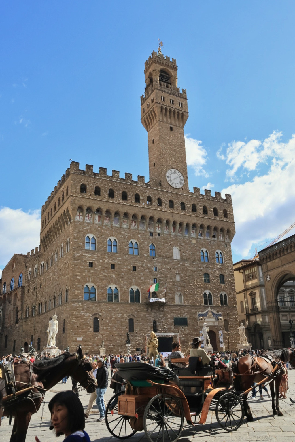 旧宫(收费),位于市政广场,是过去佛罗伦萨共和国的市政厅,广场上有诸多雕塑及复制品,包括大卫、海神喷泉、大力神、珀尔修斯等。