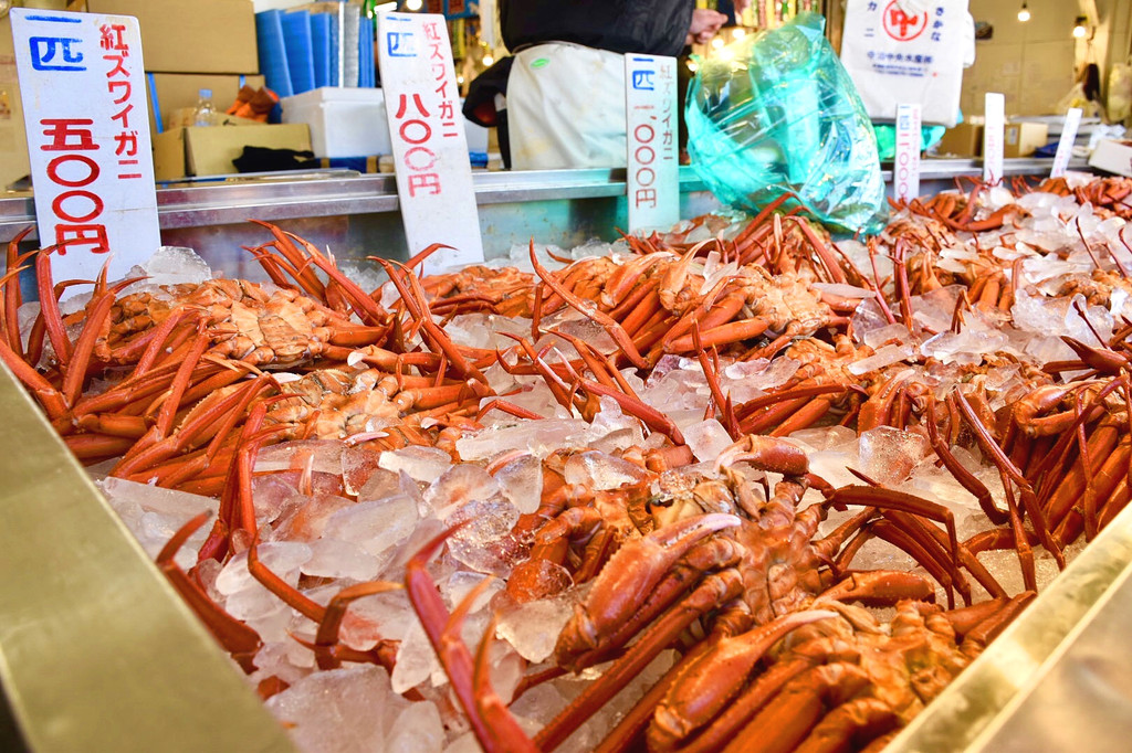 新潟著名的 红雪蟹~价格每只从35元到65元人民币不等。