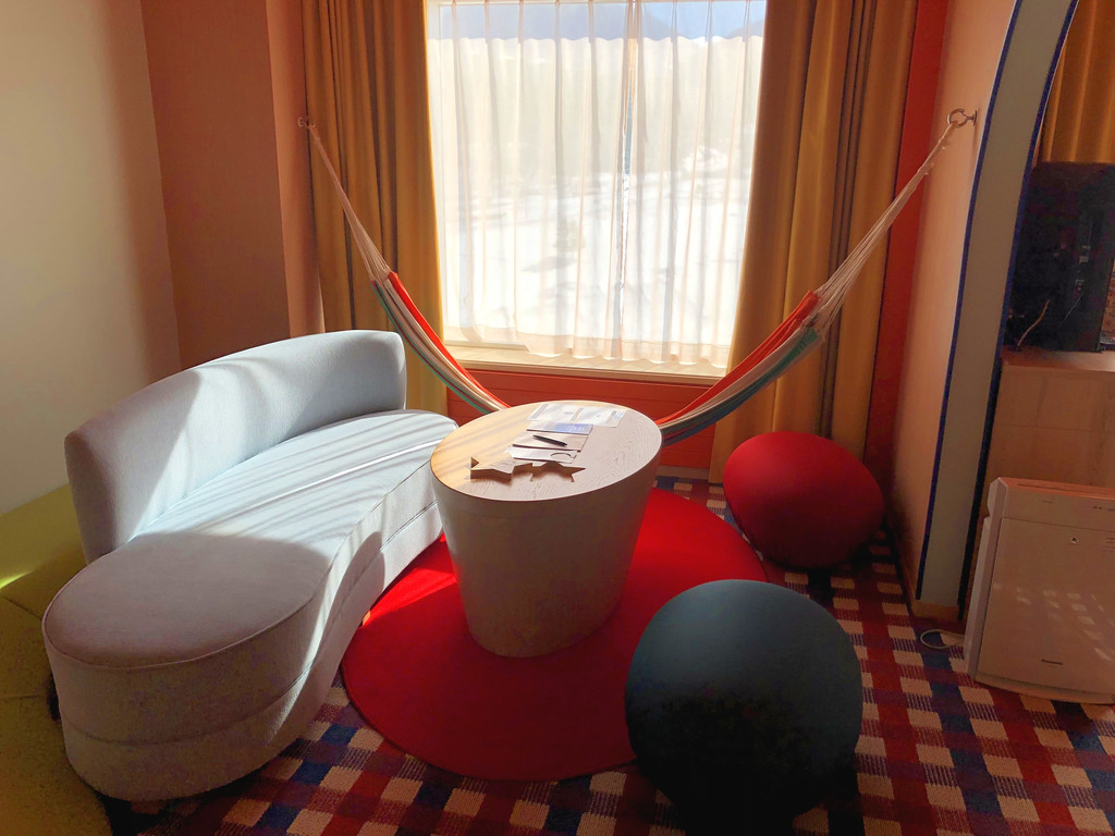 房间风格很多,不造为啥定了家庭房,可以住得下4个人!还有秋千,窗外直接看到雪场景观!