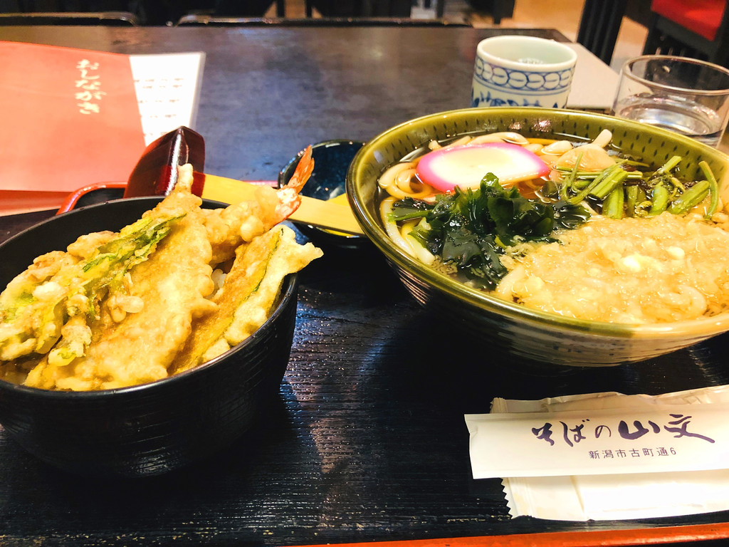 走到了一条冷清的古町街道,看到一家吃面的 そばの山文 随便点了一份套餐,1000日元不到的价格,量大喜人!味道也并不让人失望。