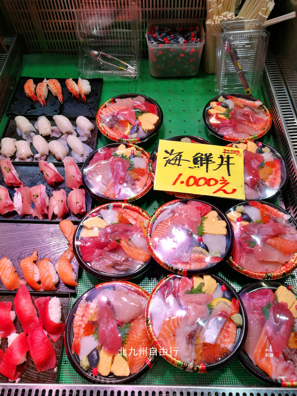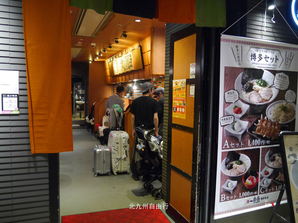 出酒店回到博多站,这里热闹非凡,到处是饭店。原想到“鱼米”吃寿司,哎呀,等位的队伍很长。
