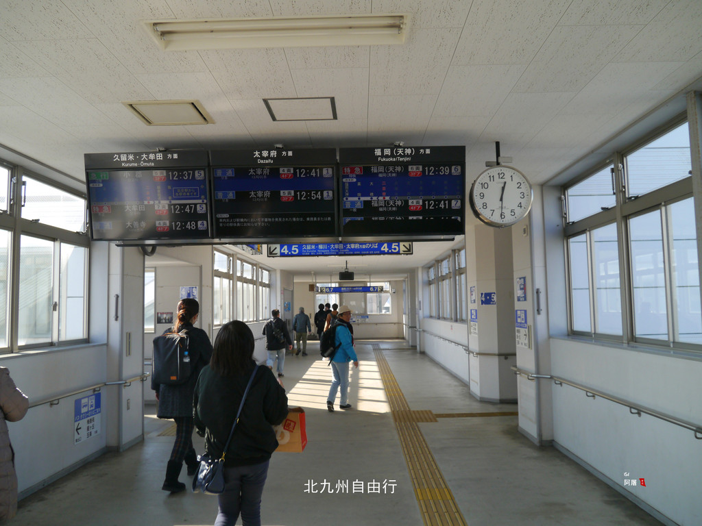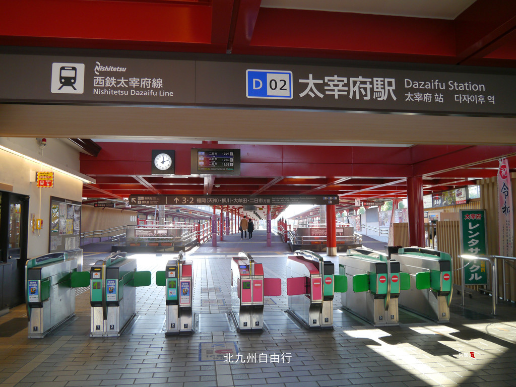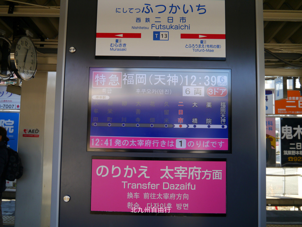 先坐二站到二日市,翻过站内天桥到到对面,换乘到天神的地铁。