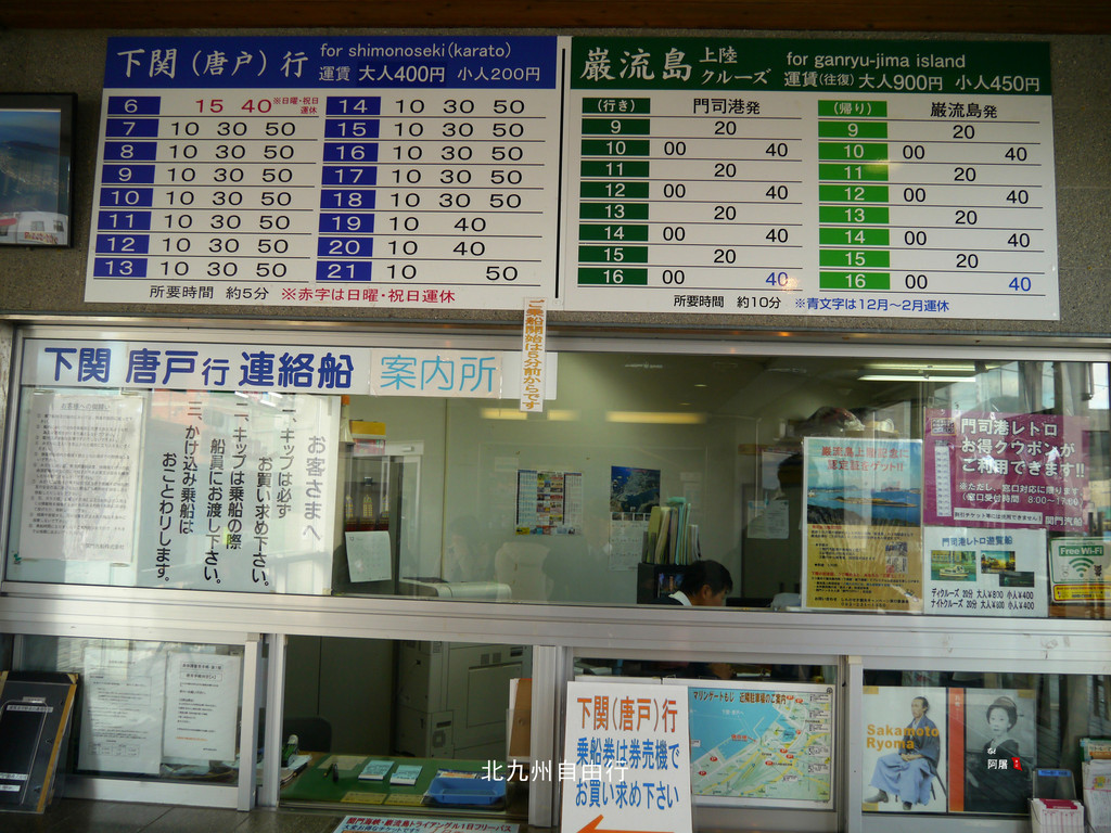 我们坐船前往下关唐户码头,船票来回800円/人。