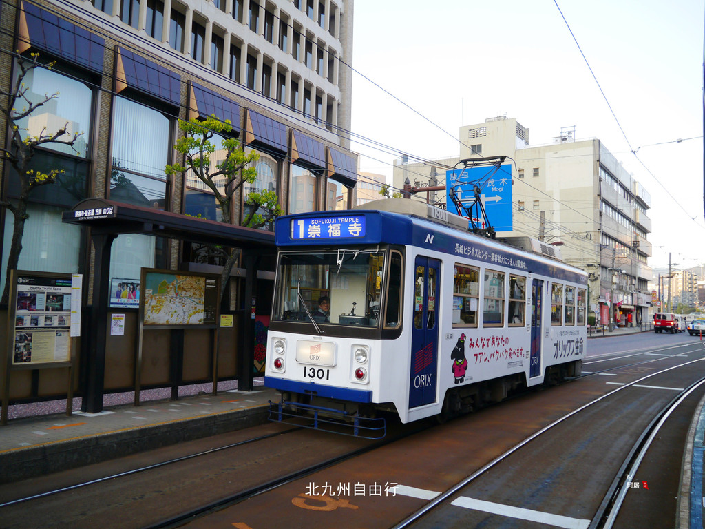 长崎的有轨电车后门上车,前门下车,下车时付费。不管行程多远单程都是130日元,在咨询处购买500日元的一日周游券,使用它可以在一天之内不限次的使用有轨电车。