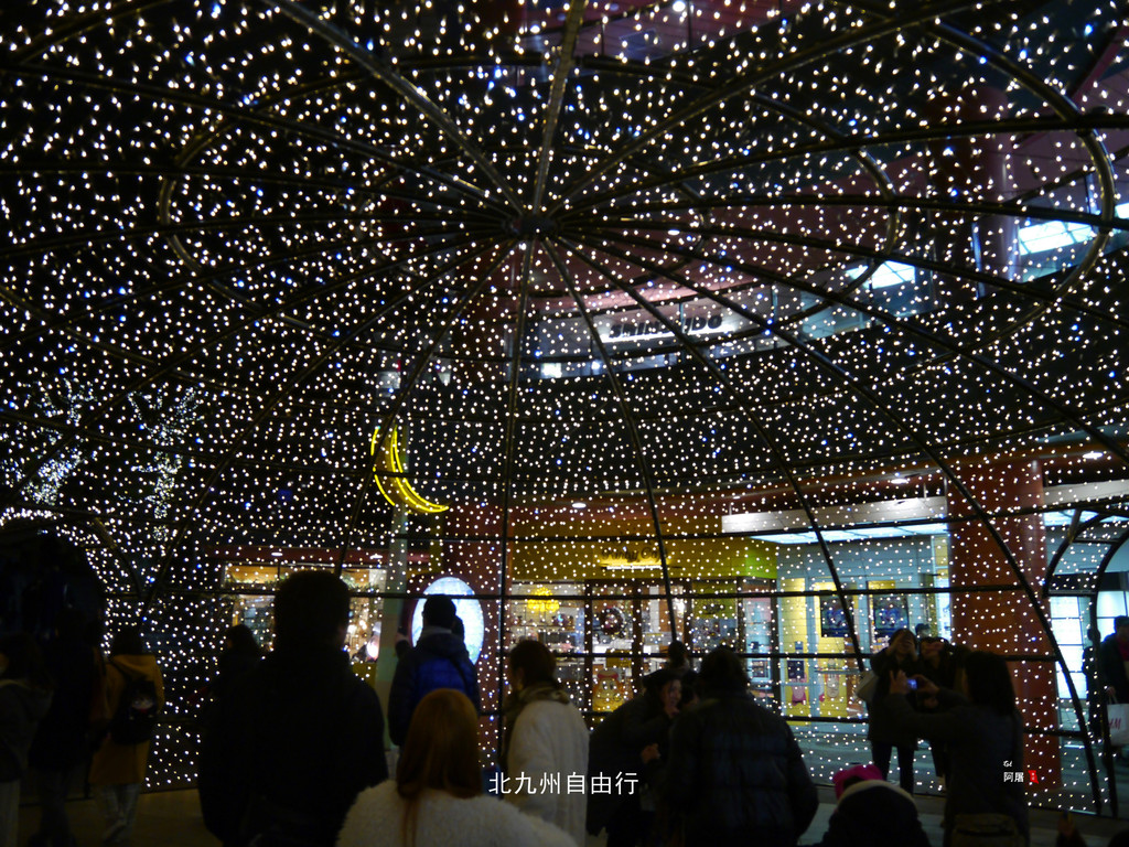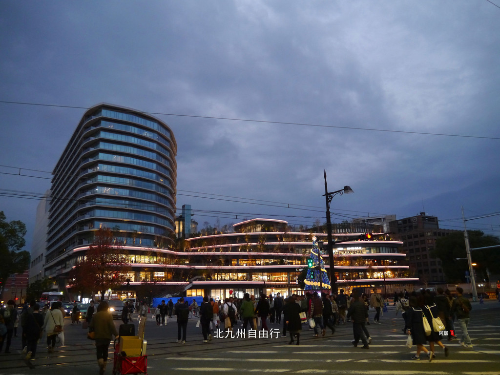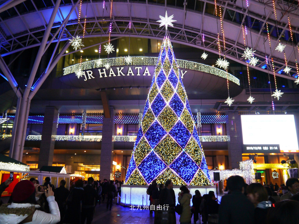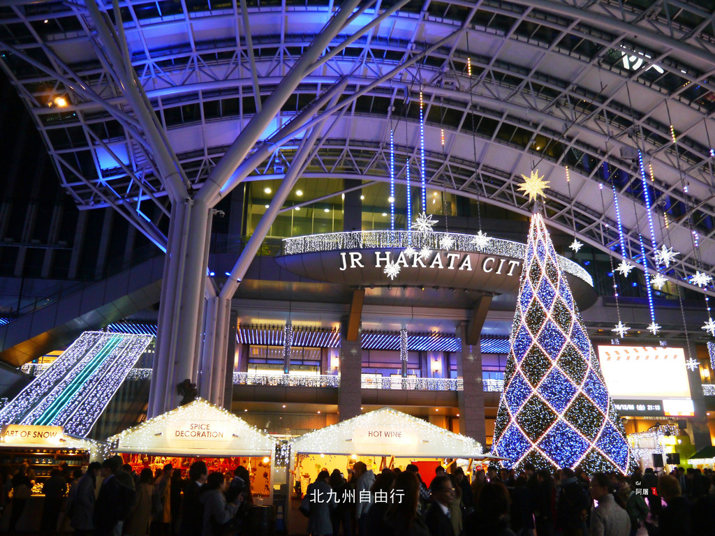 夜幕下的博多站热闹非凡,圣诞节的气氛已经很浓了。