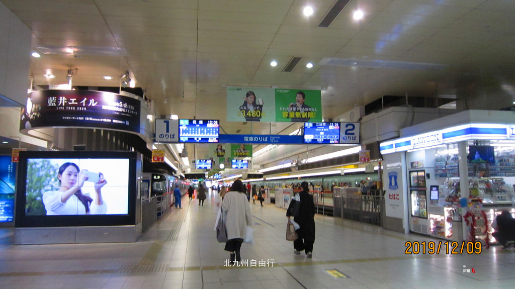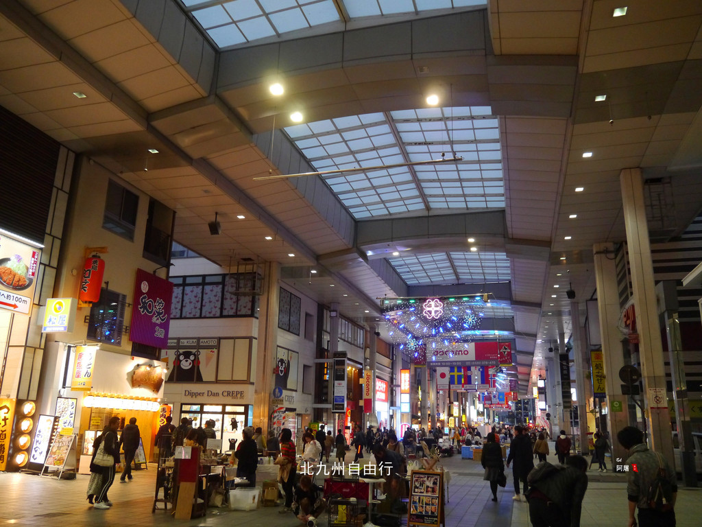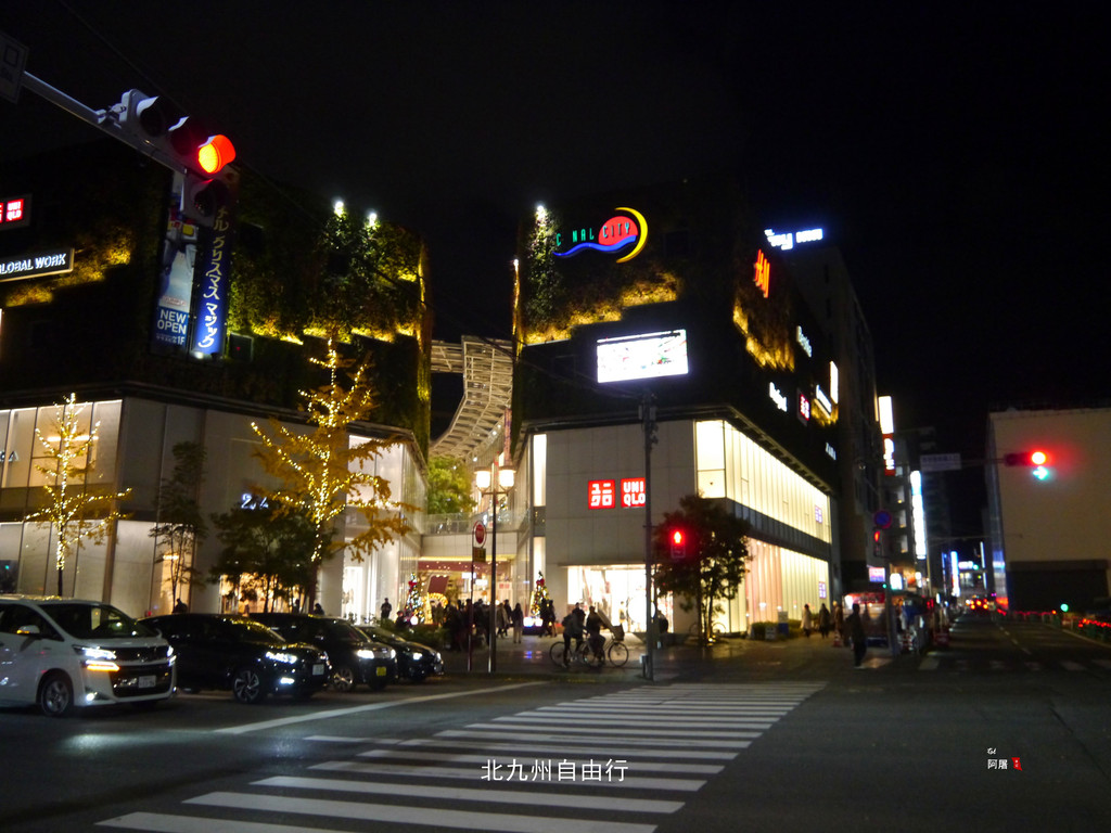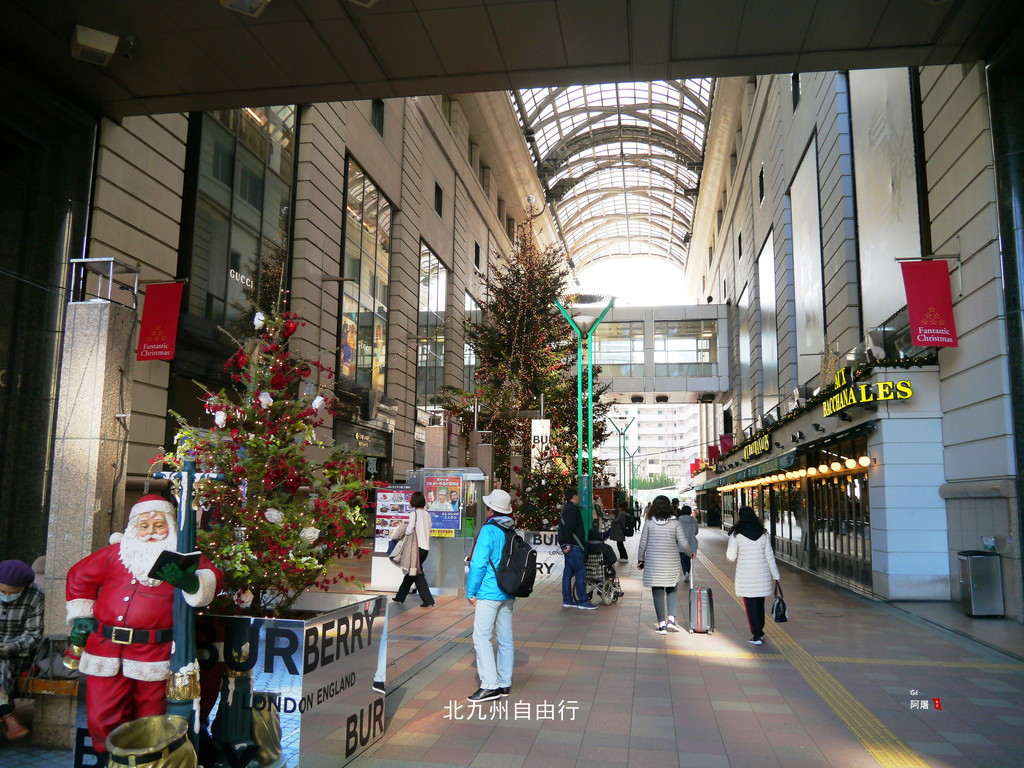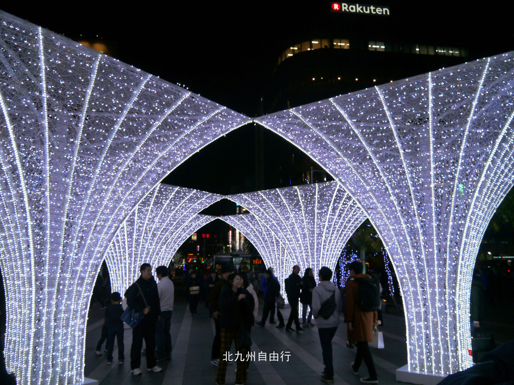 夜幕下的博多站热闹非凡,圣诞节的气氛已经很浓了。