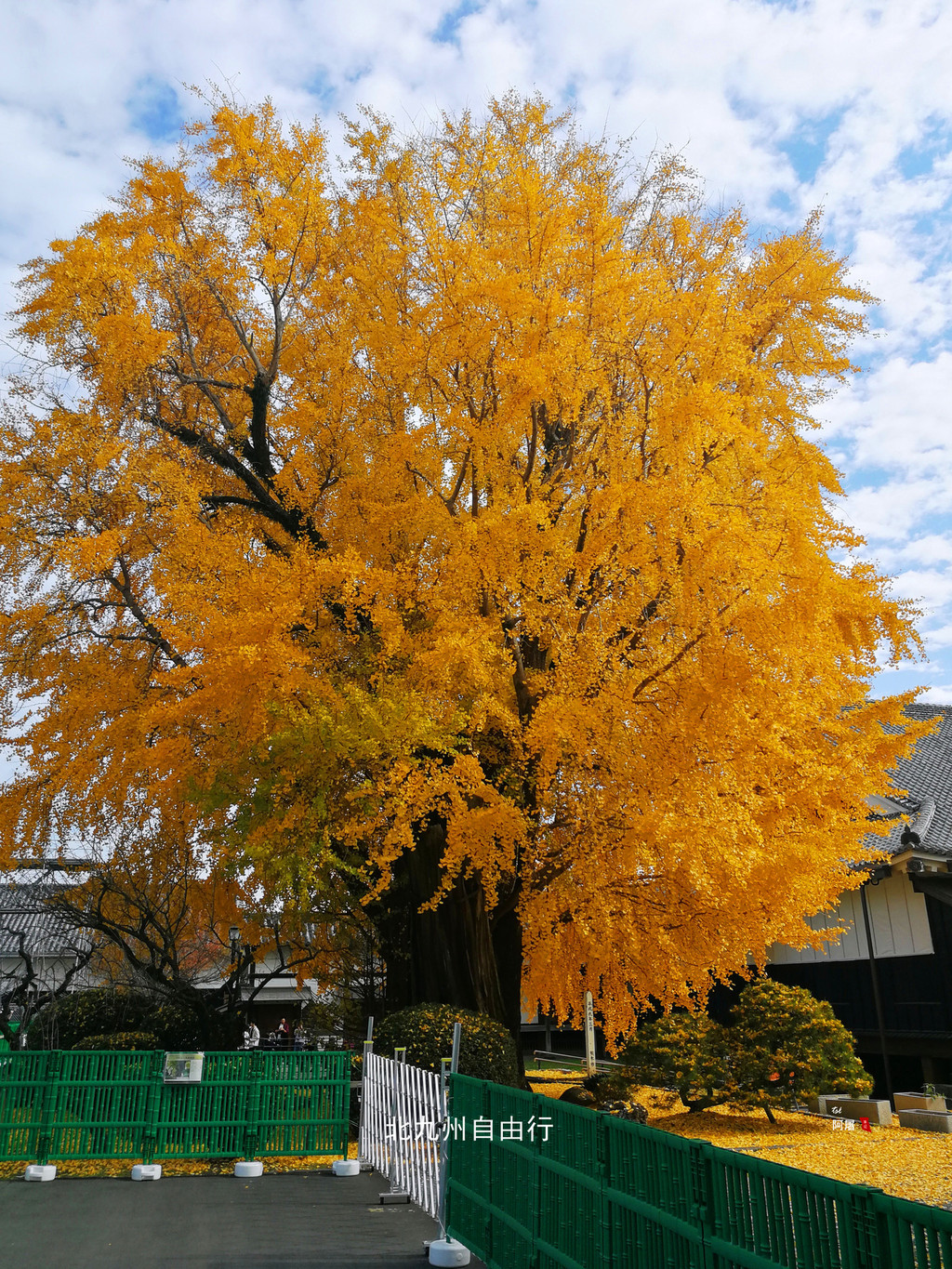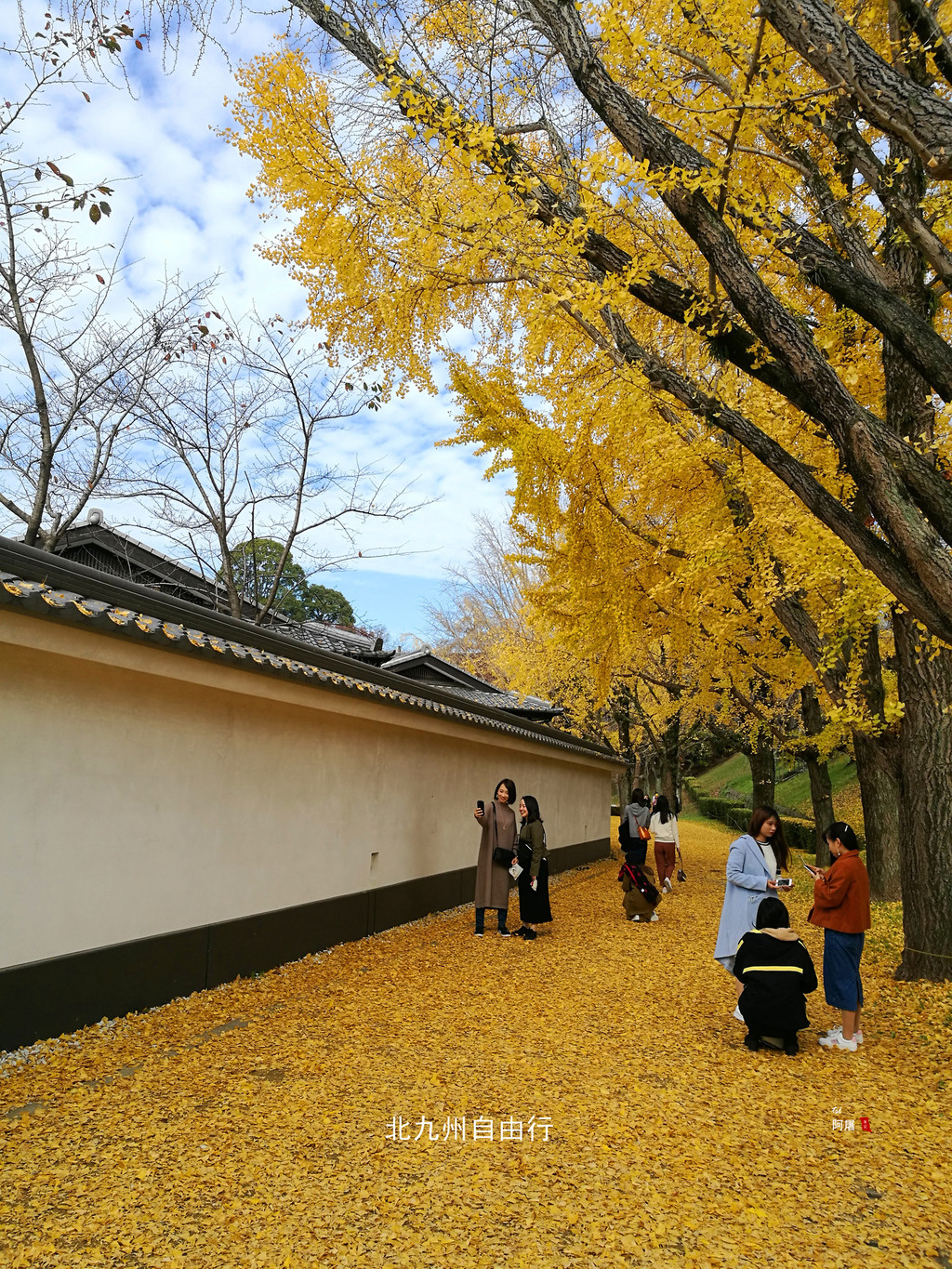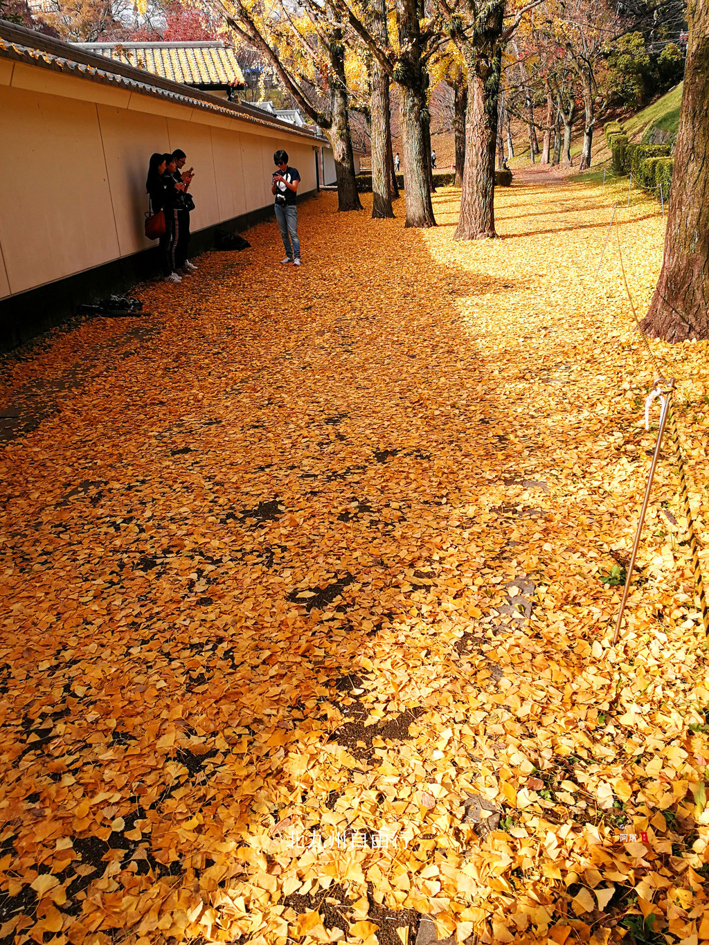 走过行幸桥,樱花小路围墙外满地都是金黄的银杏叶,吸引了不少游客,太漂亮了。