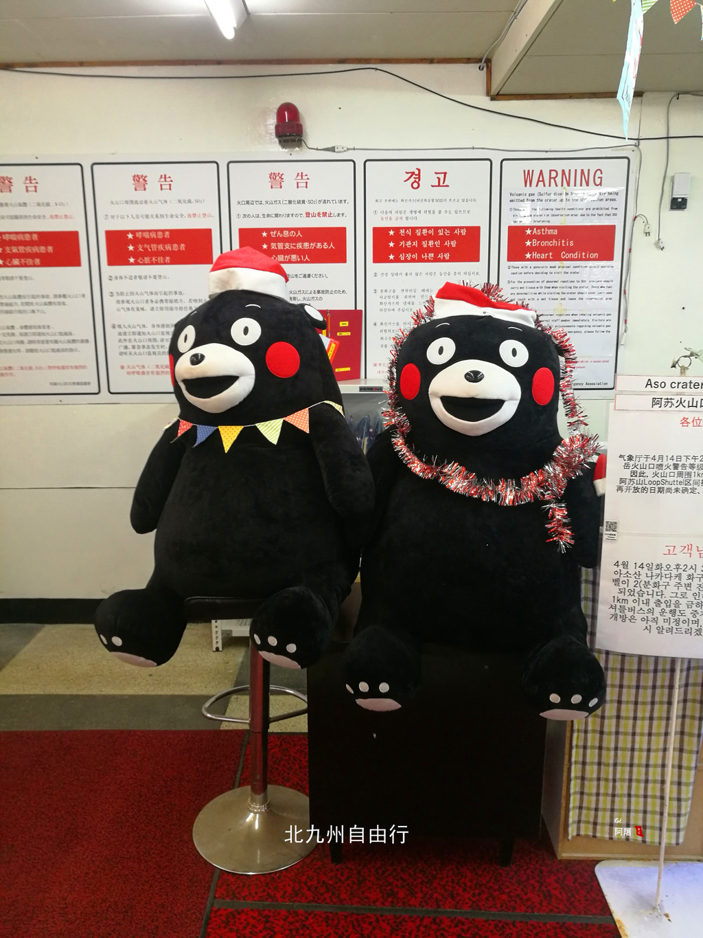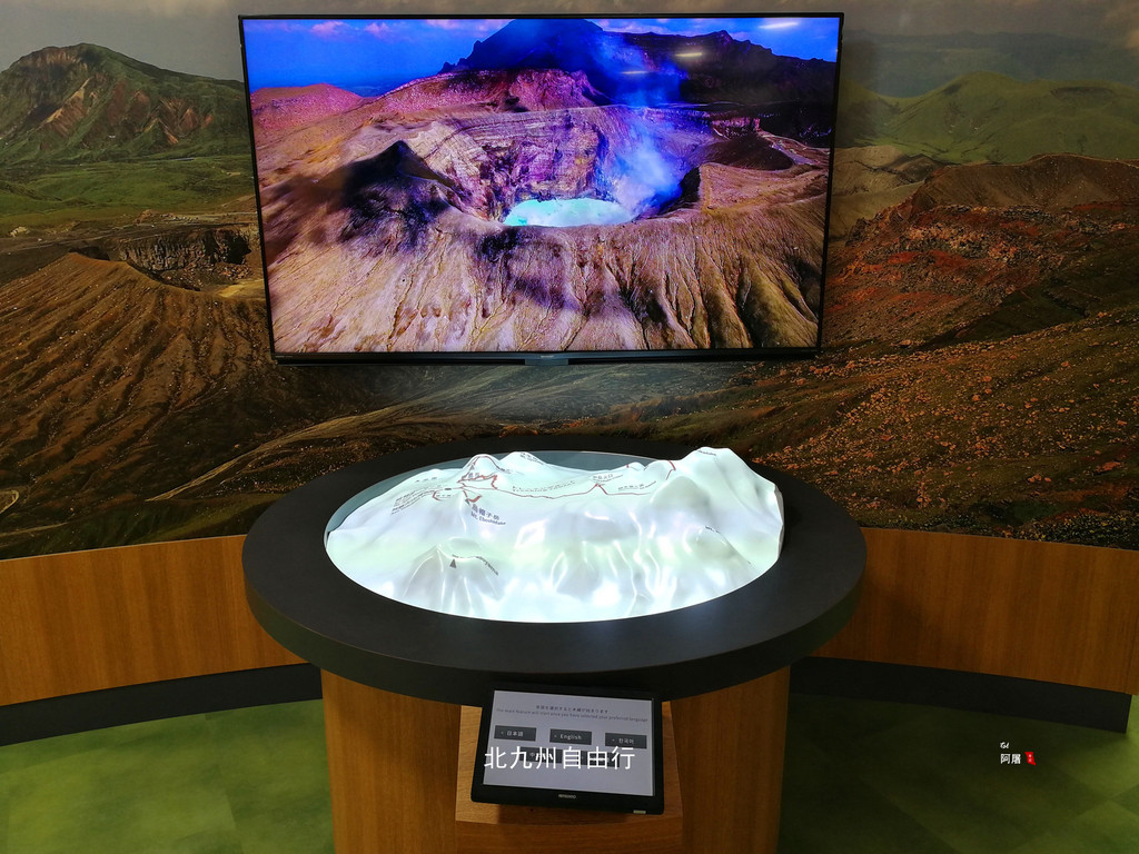 原车回到草千里(jiosaito)下车,雾还是很大。这里有阿苏火山博物馆,大厅可以免费参观,有阿苏火山相关的知识、视频介绍。入内参观门票是880円,65岁以上老人700円.没进去。