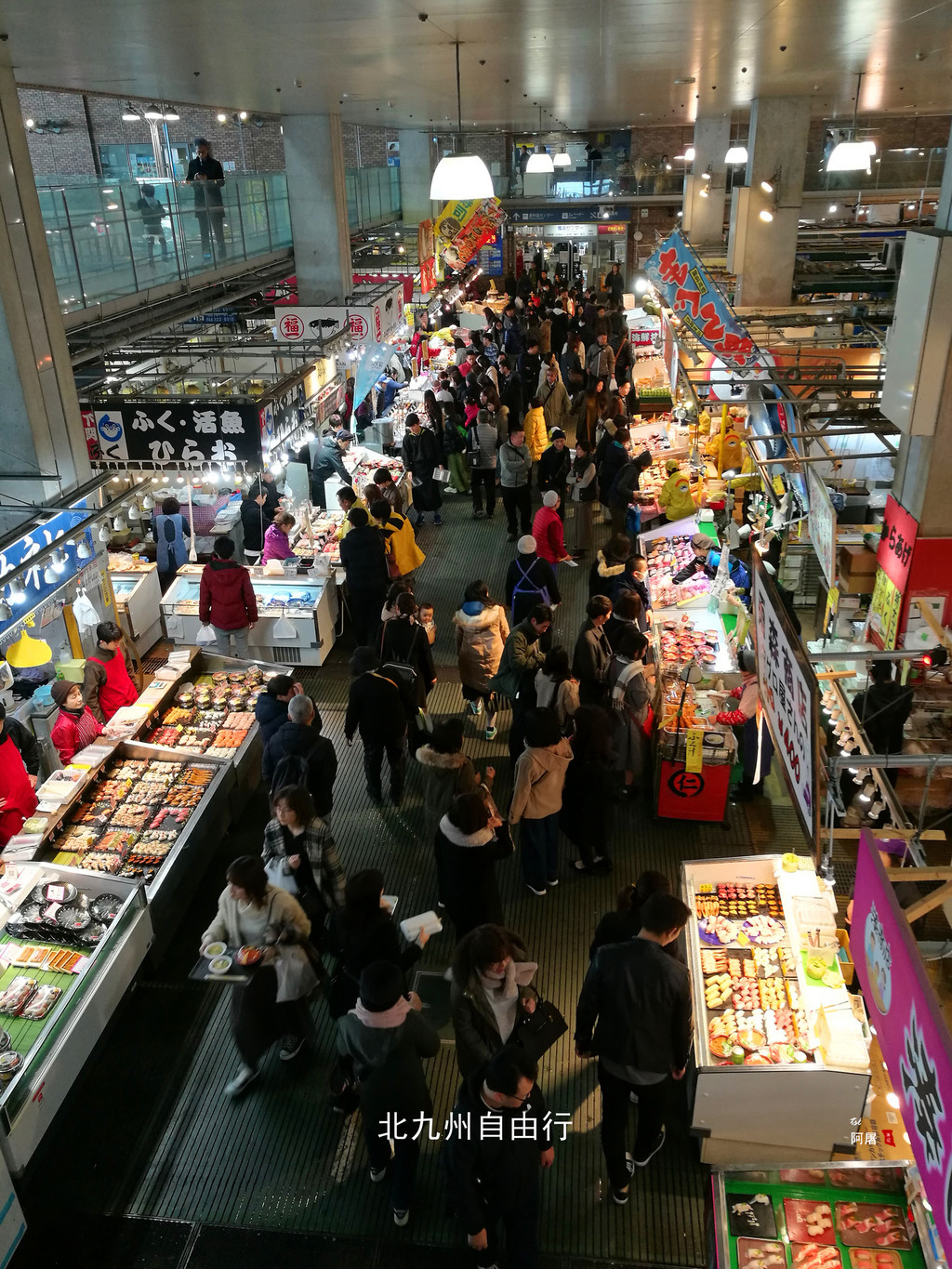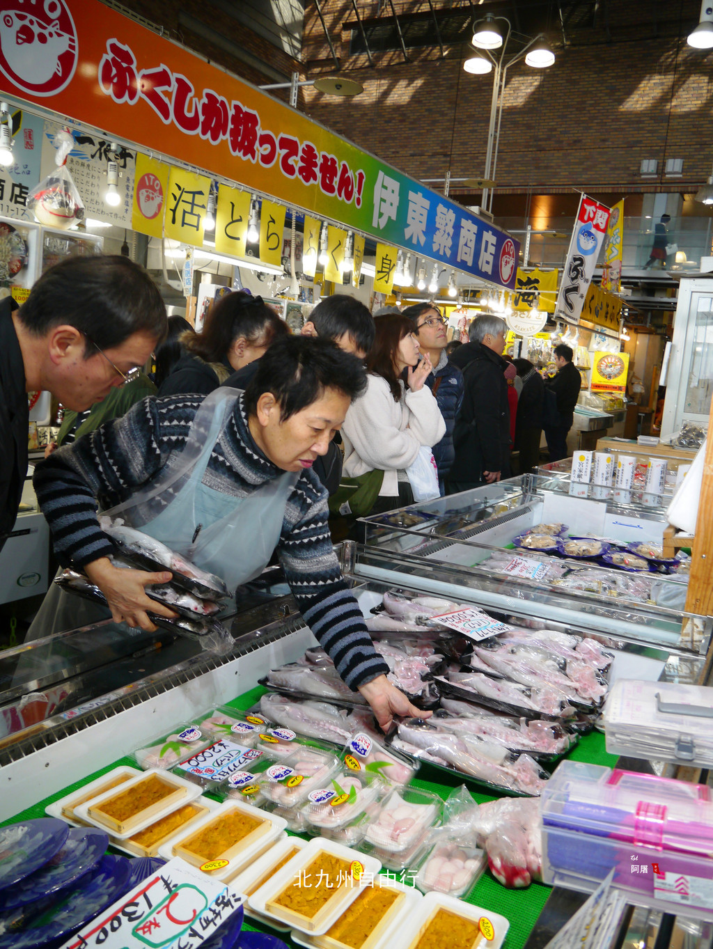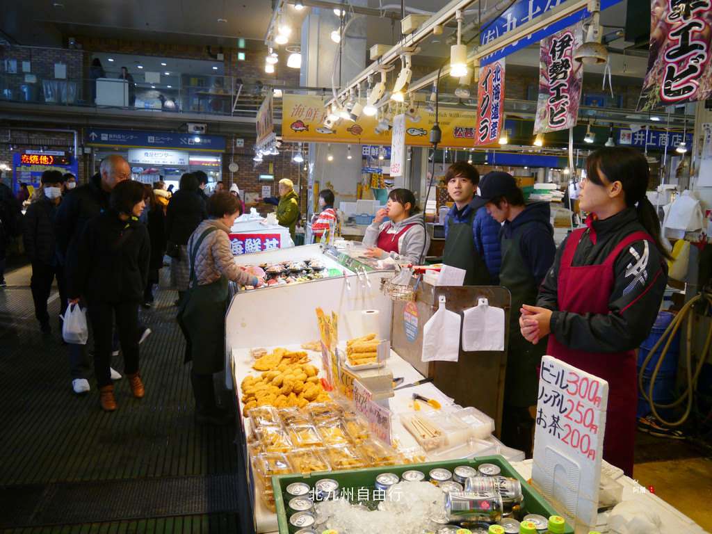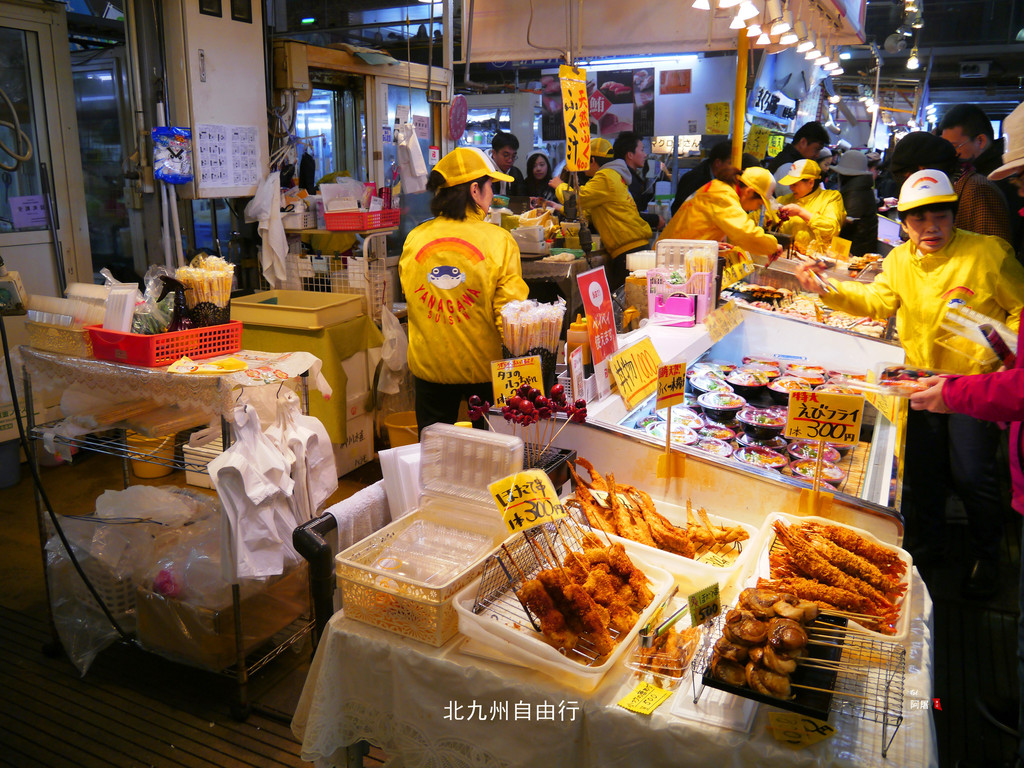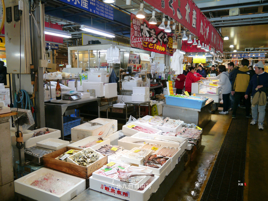 唐户市场是一个大型鱼市,每天都有刚刚出海的海鲜、河豚等新鲜食材,由于价格便宜,吸引了许多游客前来。看中的海鲜马上可以在里面餐厅加工,也有许多摊位现场就能吃到特别新鲜的刺身、寿司。