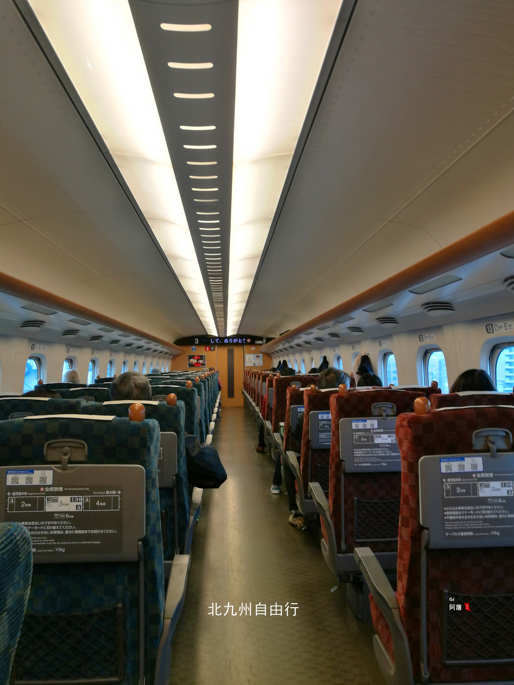 17:20的列车已经停办指定席了,直接上自由席,有位子,但该车厢没有充电口。回到博多站19:13,直接上阪急10楼,上面都是饭店。