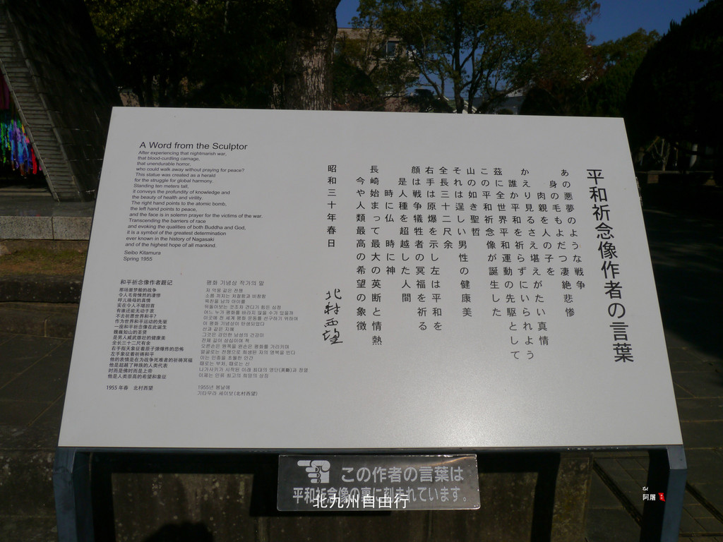 平和公园(Nagasaki Peace Park)位于遭原子弹轰炸地北侧丘陵上,是为了祈祷世界和平而建的纪念公园。参观免费。