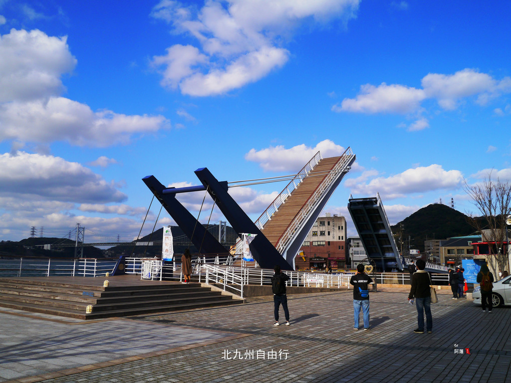 来到蓝翼门司吊桥,正好是整点开桥。吊桥每天的10:00-16:00六次开启,每次20分钟。