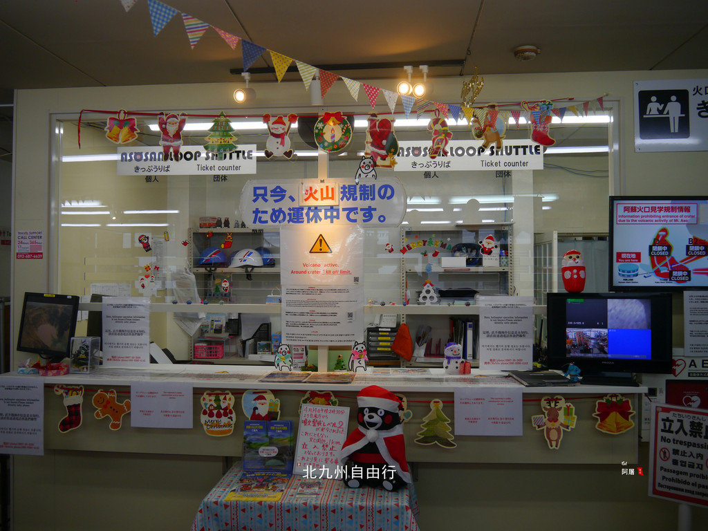 只能在车站商店看看,店里的熊本部长仿佛在对我们说,你们来的不巧。今天是无法看见阿苏火山的尊容了。