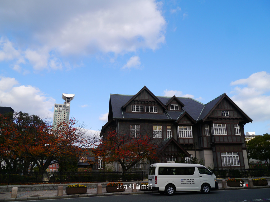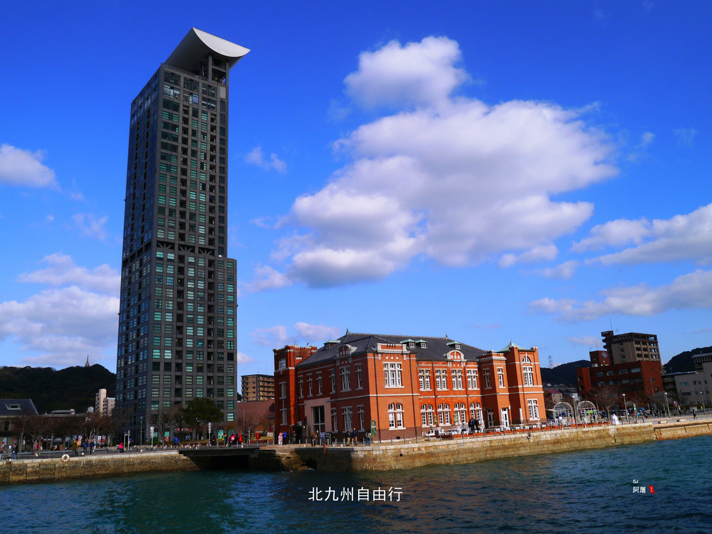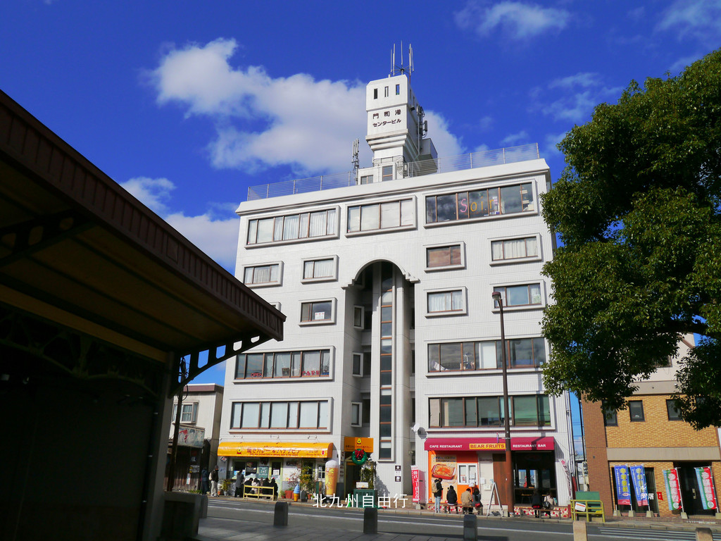 那座高层建筑是1999年建造的31层“故乡公寓”,由日本著名建筑设计家黑川紀章设计。搭乘电梯到达103米高的该建筑顶部是门司港怀旧展望台,透过玻璃幕墙可观赏海峡全景。票价为300円。