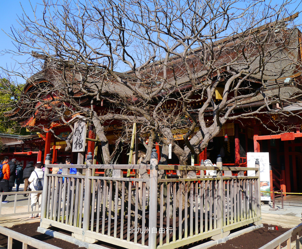 神殿的后方是一个院子。据说这里栽种了约200种,6000株梅花,每年2月上旬到3月中旬,红、白梅花盛放,赏梅之人络绎不绝。