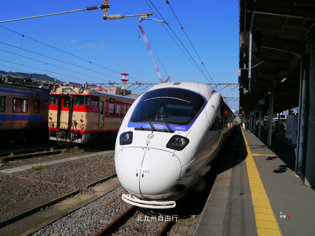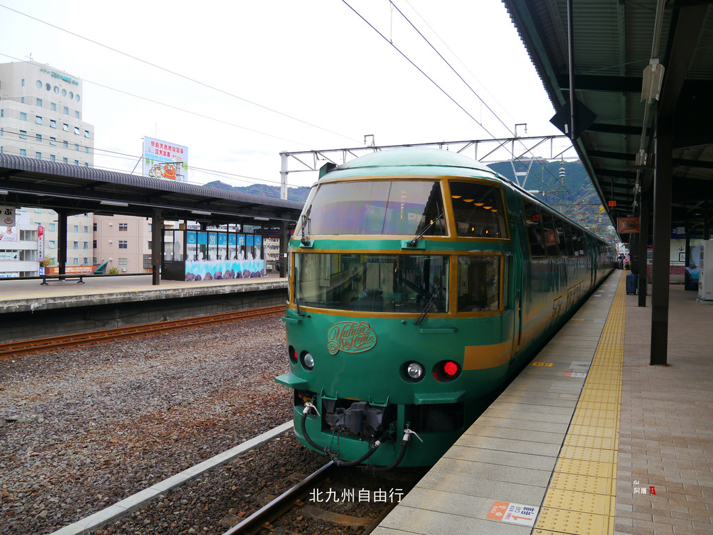 步行到别府站坐14:41由布院之森4号观光列车(YUFUIN NO MORI 1)前往福冈。
