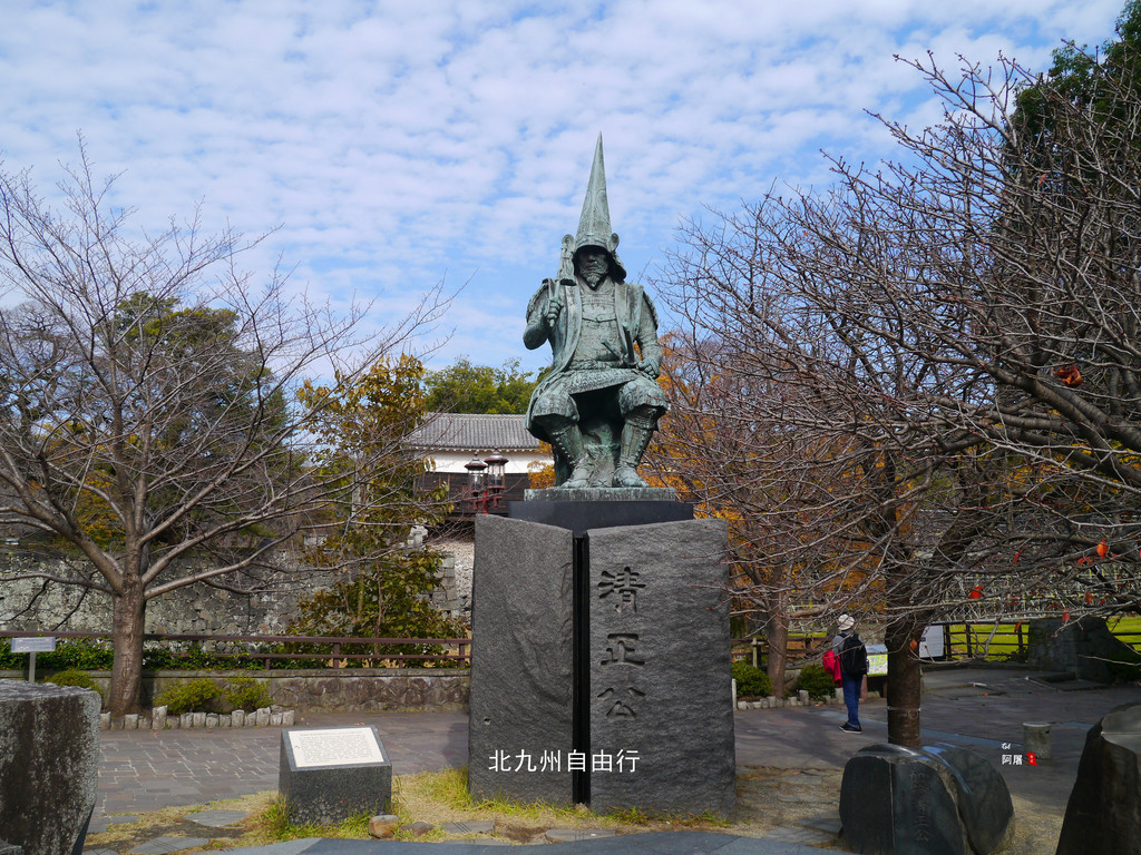 酒店到熊本城约5/600米,过市民会馆不远有一座清正公铜像。