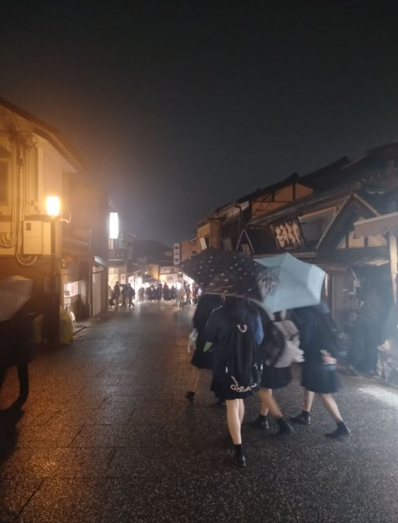 别人的清水寺都是青山绿水红寺庙的,我们的却是乌云密布风雨大作。但正值圣诞假期,少年们的游园热情深深触动了我(她们真的光腿穿短裙)