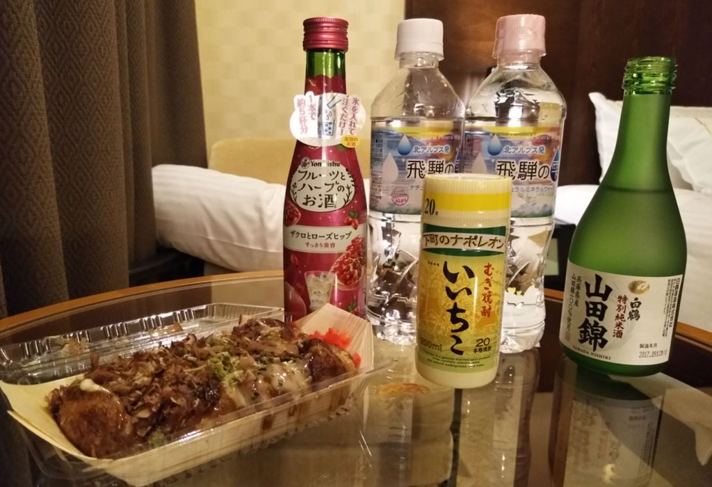 随处可见的章鱼小丸子,各种馅料,但由于语言不通菜单也没有英文和中文,每次就点推荐款也不错(便利店买的各种好看的瓶子里装的酒,都不好喝)