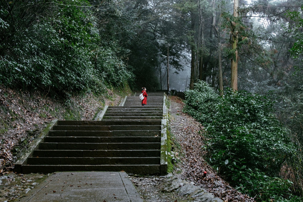 攀登583石阶后,我们终于来到人迹罕至的奥社,它是象头山521米上的最高建筑。