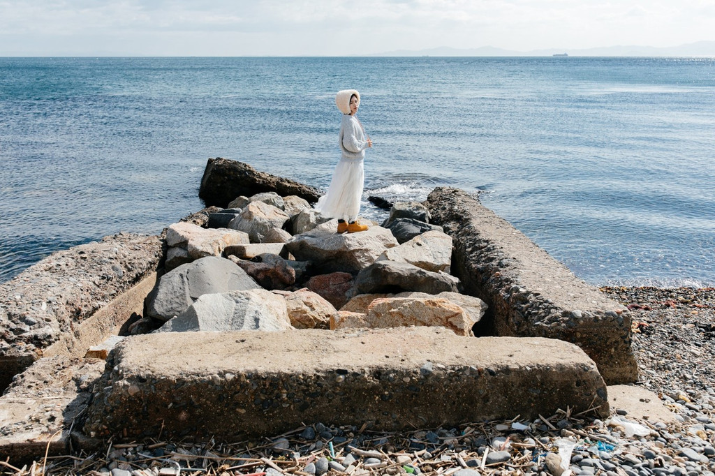 此时太阳还太强烈了,潮水还没完全退下去,只能先站在石头上远远的拍几张。