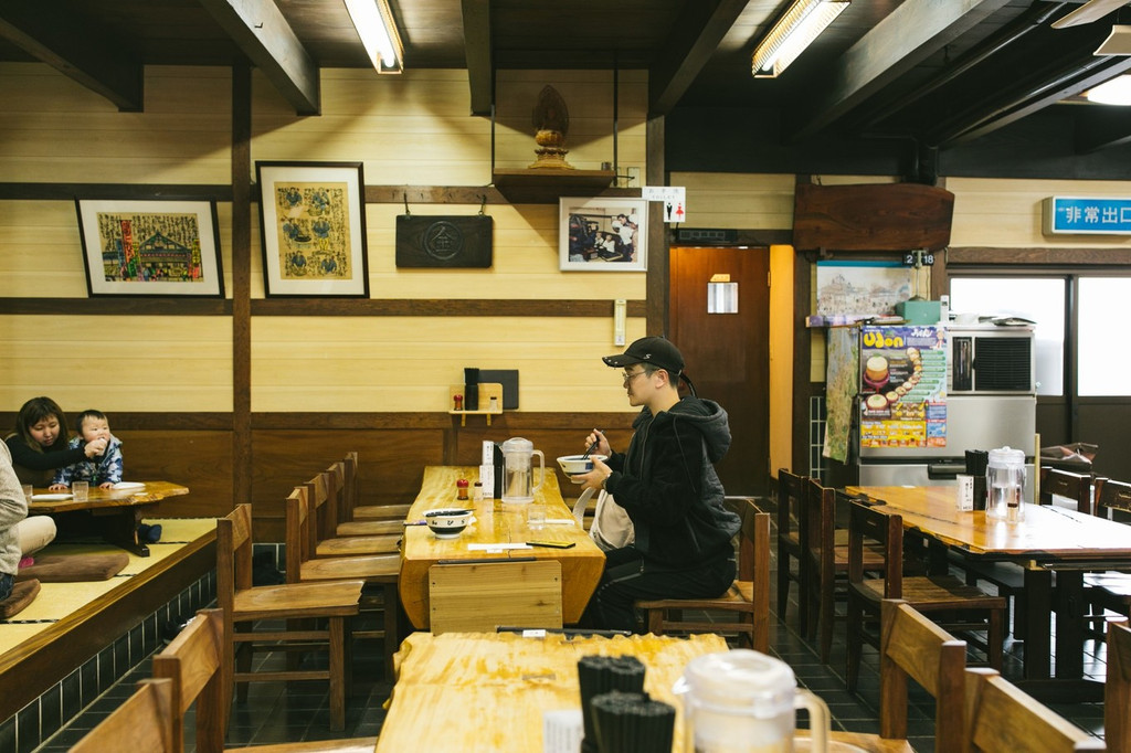 刚好今天小丸子坐的位置没有人,我们赶紧坐下来,点上乌冬面。
