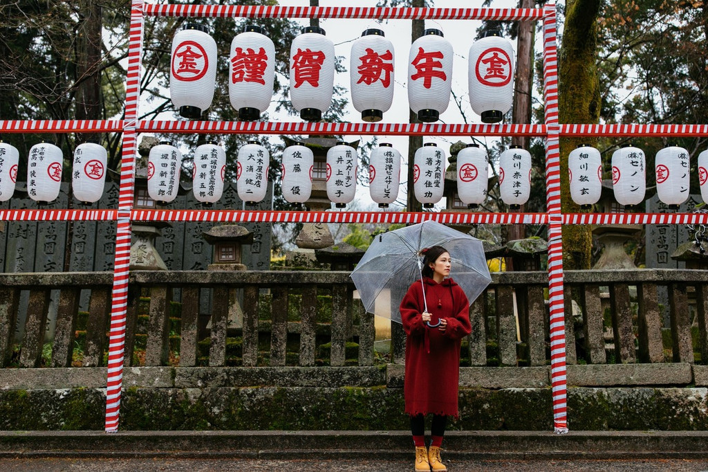 新年新春的灯笼,今天的我也很喜庆呀,和小丸子一样一身红衣服来参拜。