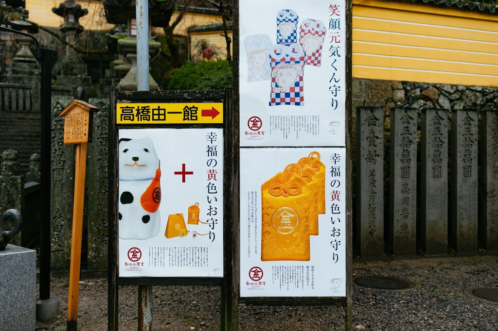 看到可爱的御守,就忍不住想买,既然来了肯定是要全部纳入。最先想买的就是这个超级可爱的笑颜元气君啦!这位笑颜元气君,据说是以心灵纯洁的小孩子为原型设计出来的,我觉得和下图的金比罗犬造型一模一样啊,就是可爱版本的金比罗犬。