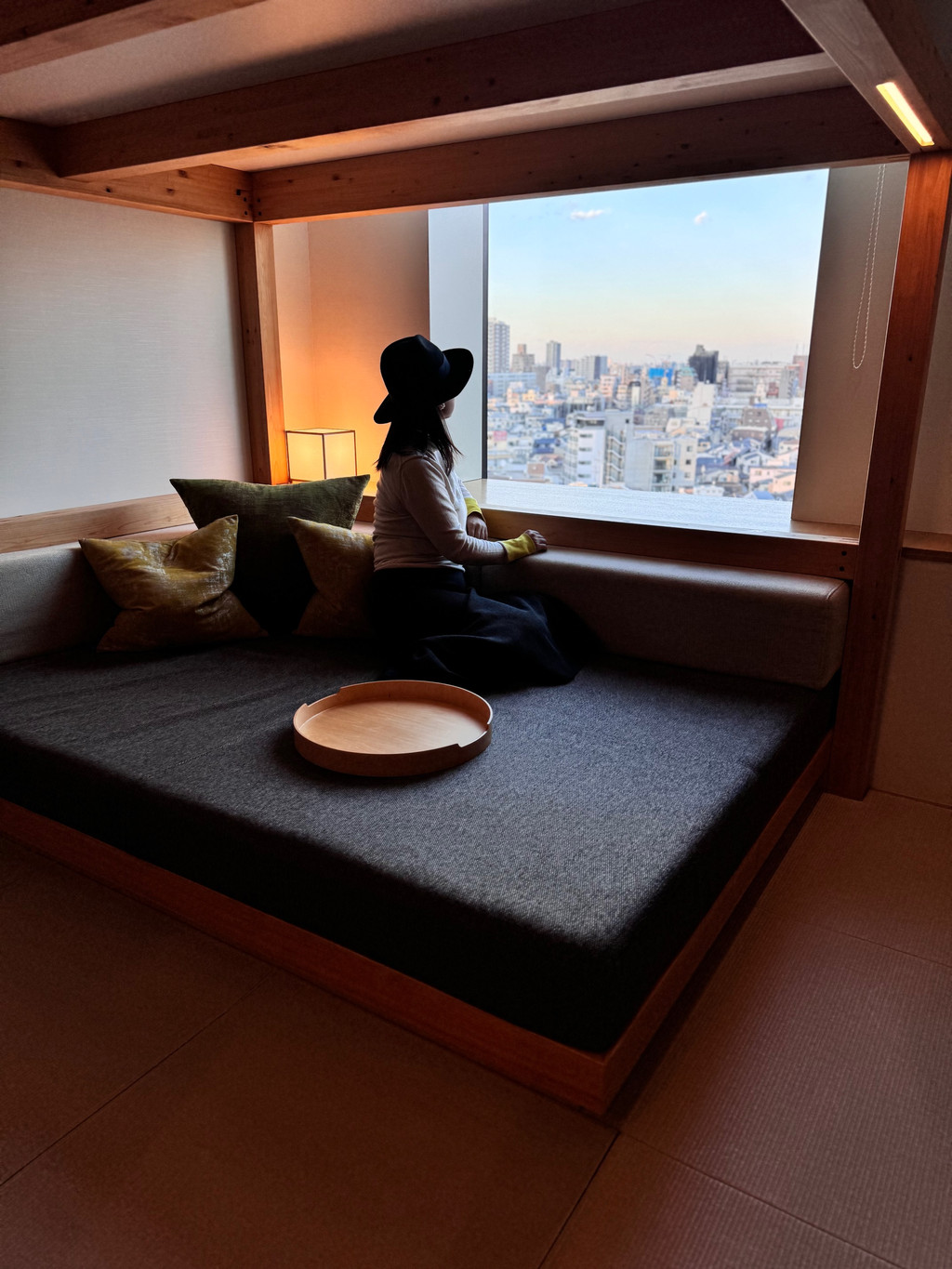 在寸土寸金的东京,45平的房间面积足够让人满足。一整面墙的窗户,坐在房间里看夕阳西下真的很浪漫。我特别喜欢的一个服务就是,服务员会把散乱的充电线都整理得特别整齐,让人感觉生活极其精致讲究。