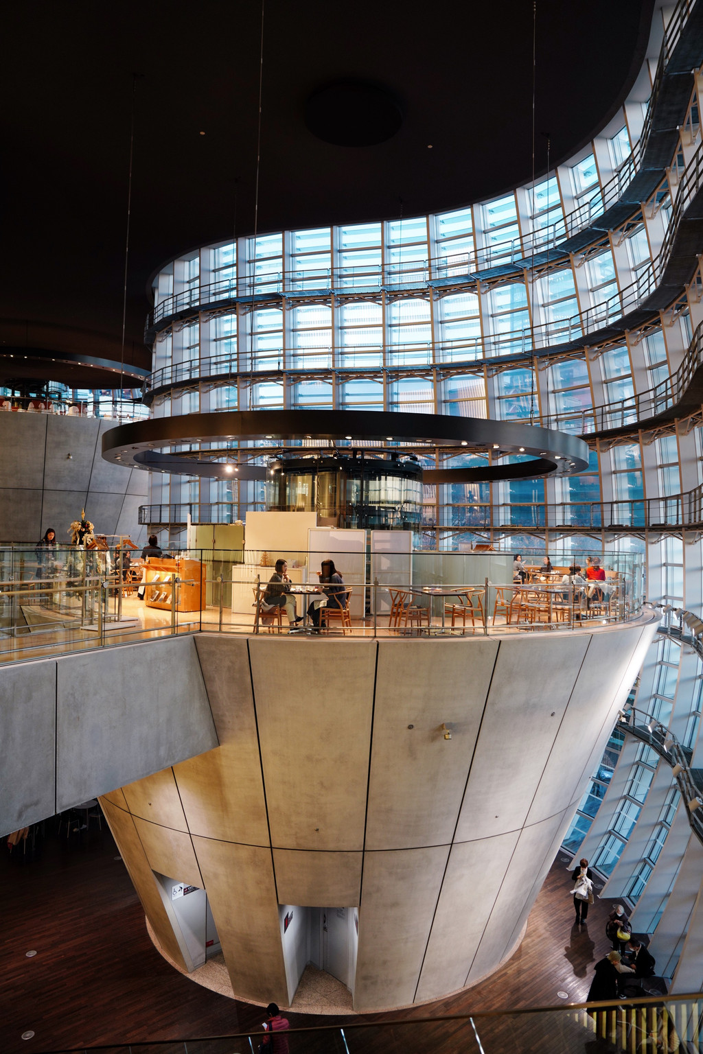 东京国立新美术馆是由享誉全球的日本建筑大师黑川纪章先生设计的,以“森林中的美术馆”为概念而建造。弧形玻璃幕墙,仿佛连绵起伏的海浪充满张力,独特的圆锥形正门让人也过目不忘。