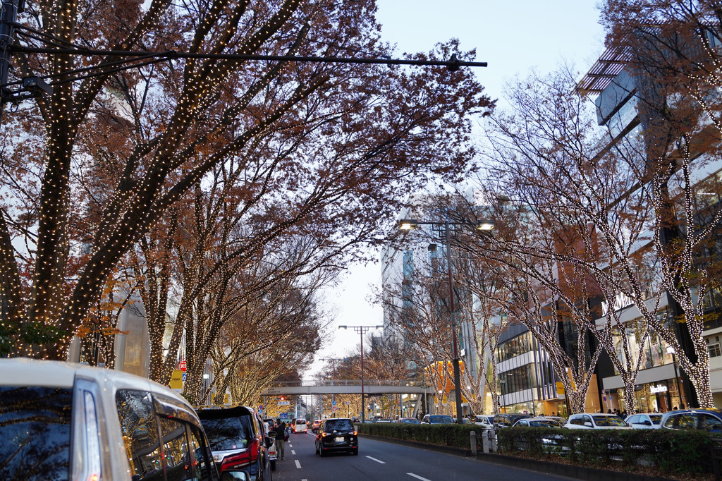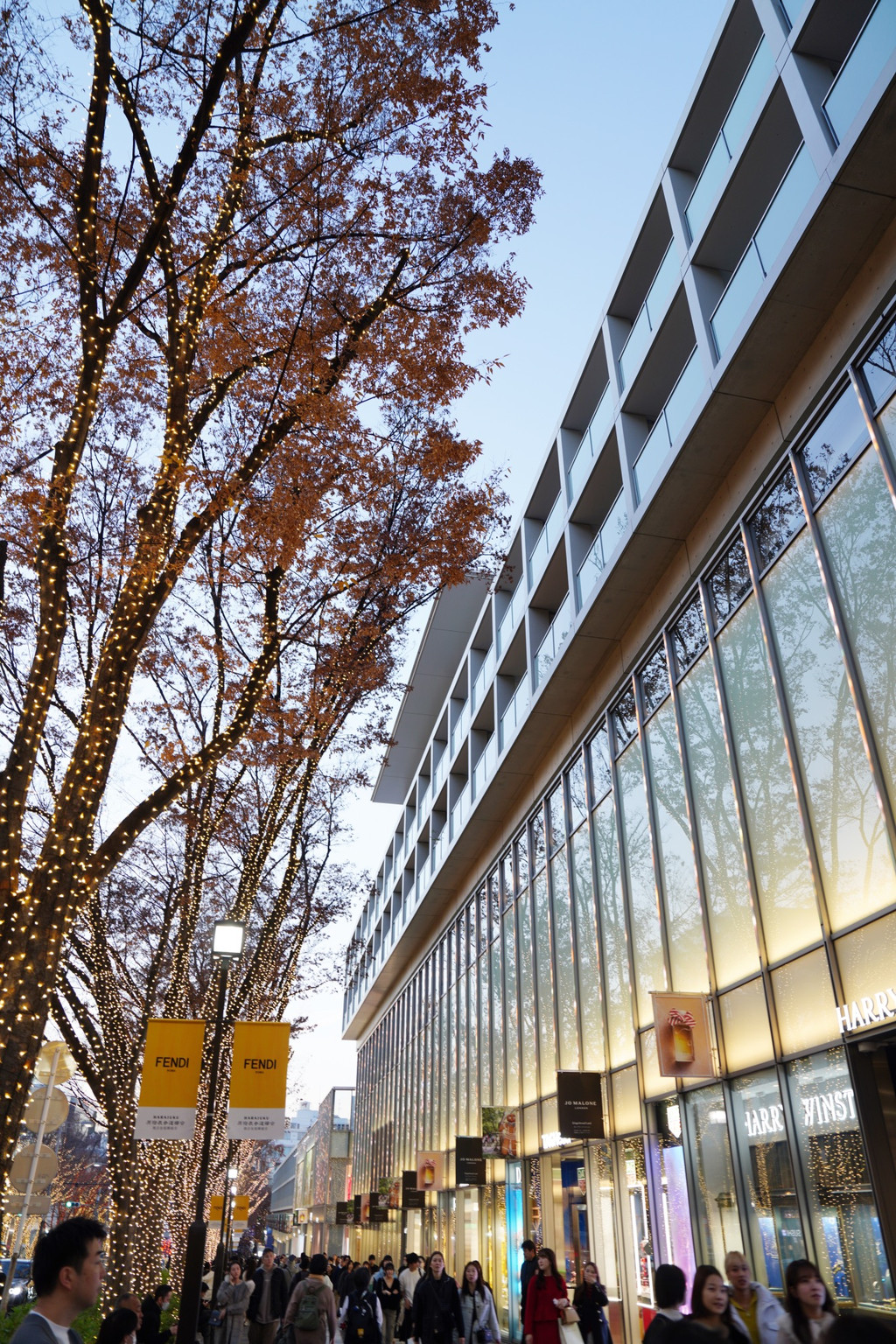 傍晚时候漫步到表参道,依旧是摩肩接踵,从神宫桥十字路口到表参道十字路口,道路两边的一排排树木每年都亮起万千灯饰,温暖的灯光营造出浪漫的氛围,一边悠闲散步一般欣赏灯饰,这是冬日表参道的浪漫表达方式!