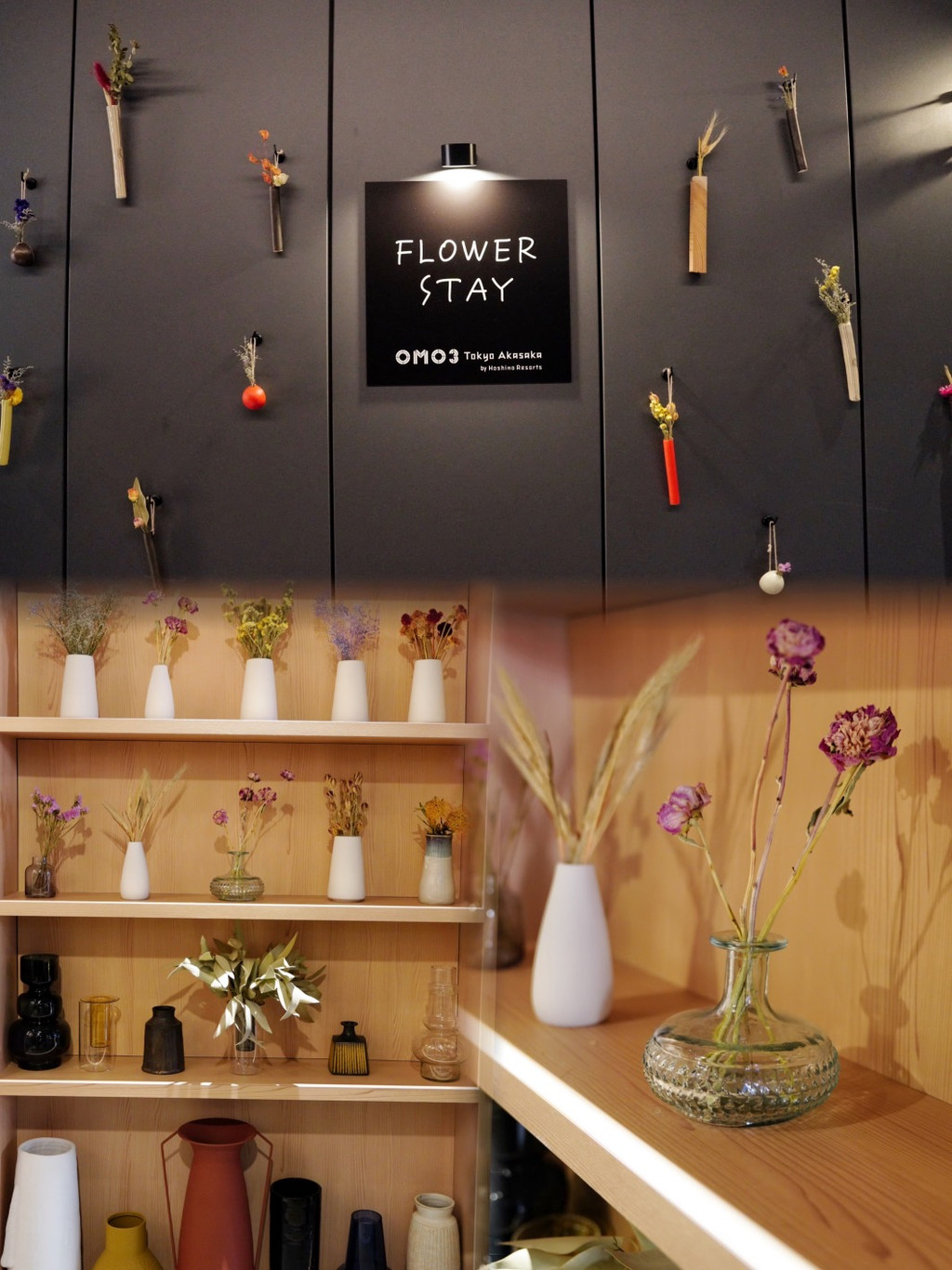 特别喜欢OMO3东京赤阪的公共空间,时尚舒适,醒目的Go-KINJO Map让我能快速了解到周边好玩的一切!在一层大厅能看到很多干花和花瓶,可以根据自己喜好选择花和花器,在入住期间免费放置在房间里,将花装饰在房间里的话,就会诞生一个只属于自己的特别空间,这就是OMO3东京赤阪独特的Flower Stay体验。