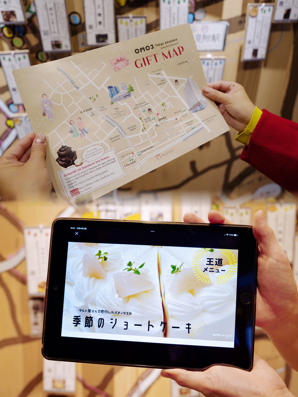 另外 东京 赤坂是很多 东京 人当时看艺伎表演的地方,所以这里现在还留存着很多伴手礼店,OMO3 东京 赤坂还有一个独特的体验就是,“赤坂纪念品导航员”,导航员根据问客人问题的答案来推荐周边的伴手礼店,我是选择送给自己+和果子派,适合我的伴手礼店是和果子店—松月!