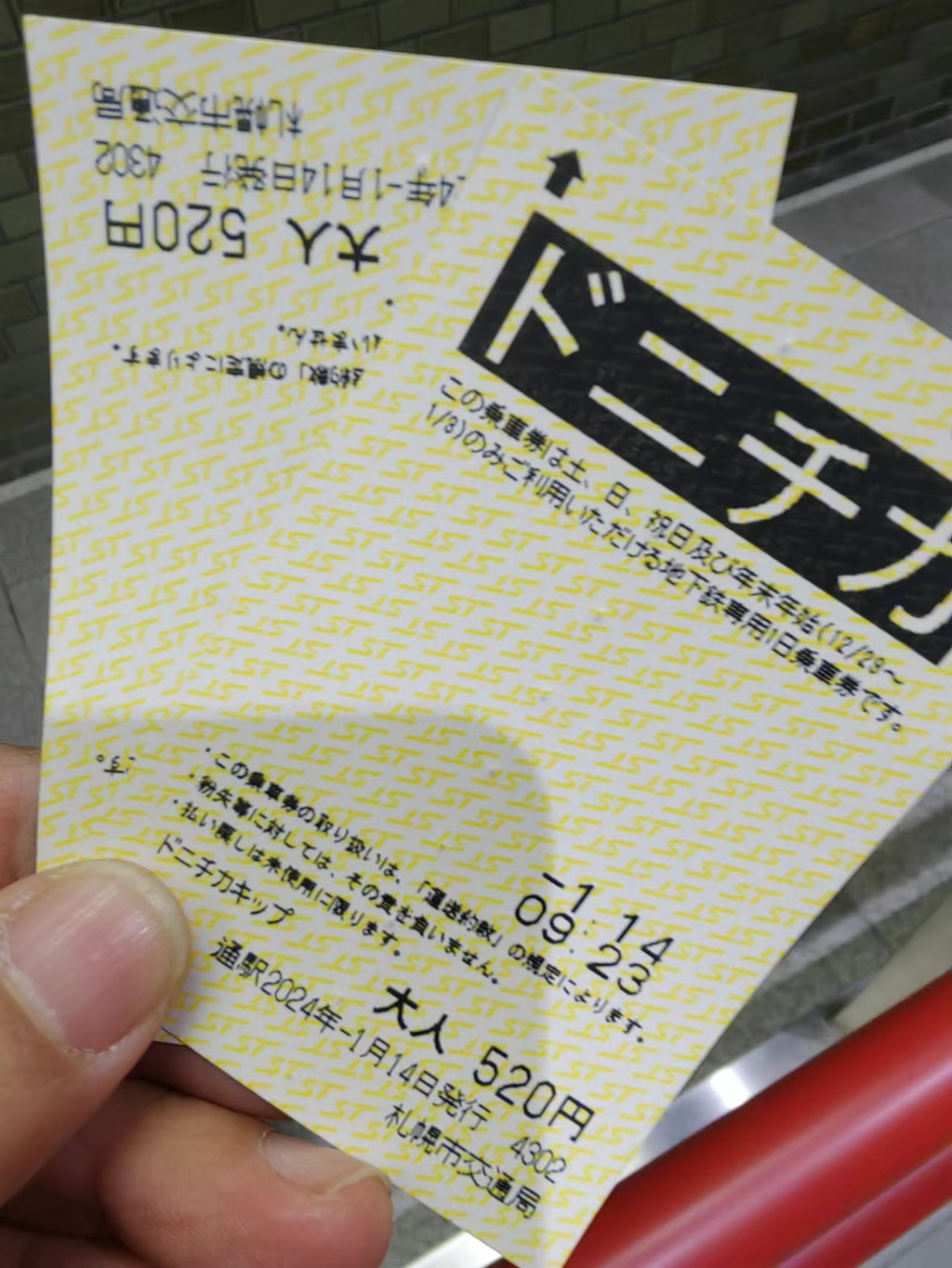 【円山公园、北海道神宫】酒店出发到大通地铁站,找到东西线,“改札口”前在自助机上买“一天的通票”,像火车通票一样的用法。520元一张,现金准备好。