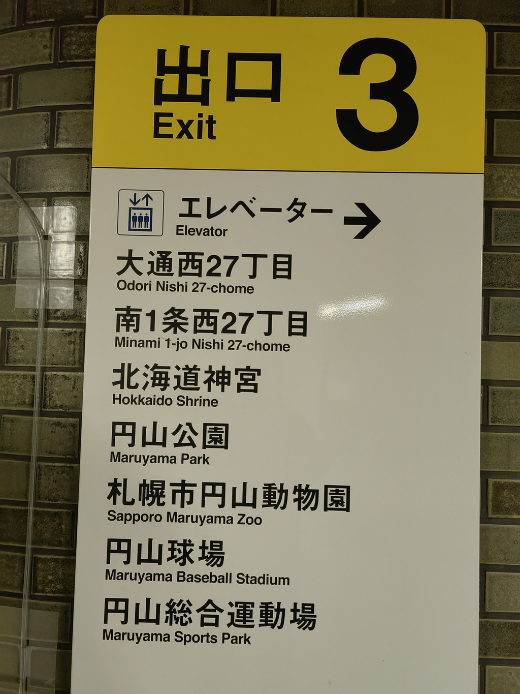 刷票进站,记得把一日票收好,乘坐的是“宫之尺”方向(原谅我这里写错别字,打字打不出啊!也有写宫之泽),到达円山公园站(3出口)。到了地面跟着人流朝前走就是了。记着这个站点,回来还要从这里乘车。