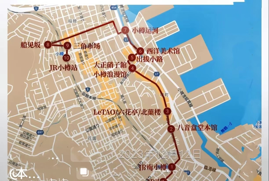 今天先这样走:札幌-JR小樽-三角市场-船见坂-小樽运河-西洋美术馆-出拔小路--JR小樽(小樽汽车站)-天狗山-返回札幌。